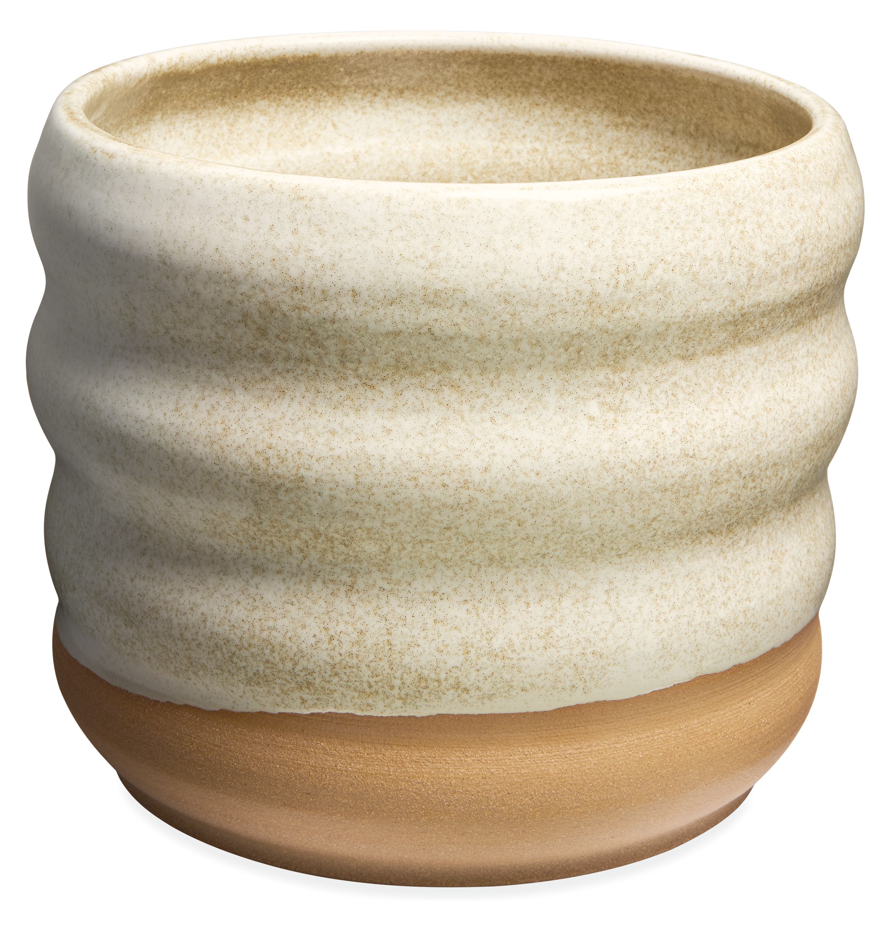 Our Elias planters are handmade of durable stoneware in Minneapolis, Minnesota, by ceramicist Francis Pineda-Fischer of Sandwich Ceramic. The curvy organic lines and dipped glaze effect highlight his artistry and the uniqueness of each piece. Each planter has a glazed interior and can be used indoors or out, but we recommend bringing it indoors if temperatures drop below freezing.