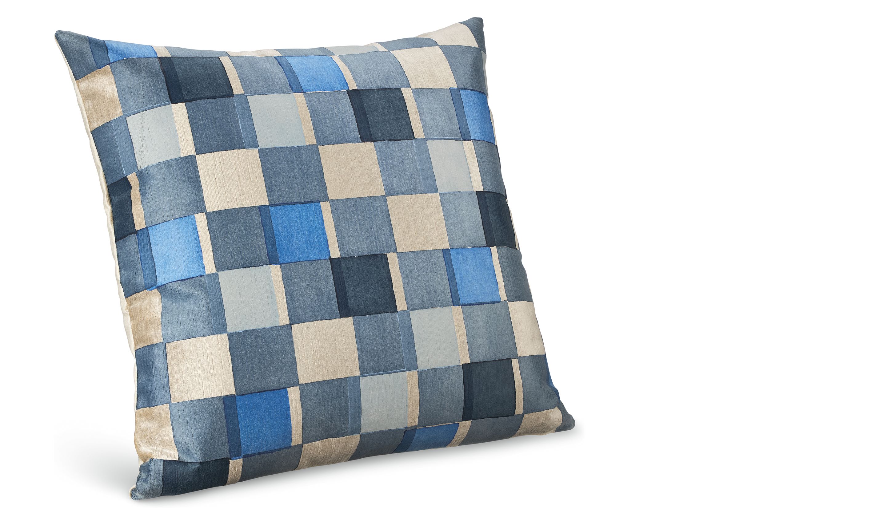 An irregular pattern of squares with soft edges decorates this modern throw pillow. Soothing colors enhance the organic elegance, while the 100% cotton velvet adds softness.