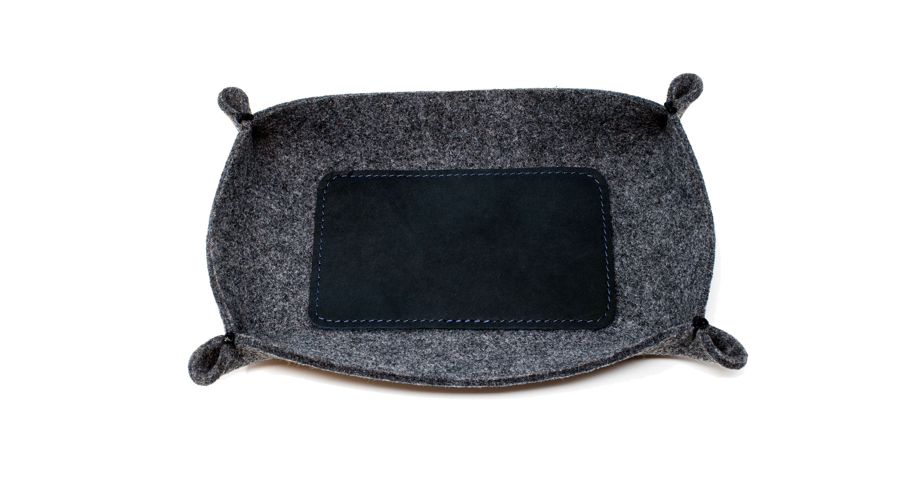 This handsome tray is made of sturdy felt with a top-grain leather bottom that’s sewn in for stability. From sunglasses to keys, this tray provides sophisticated storage in the entryway, on your dresser or at your desk. Available in two sizes.