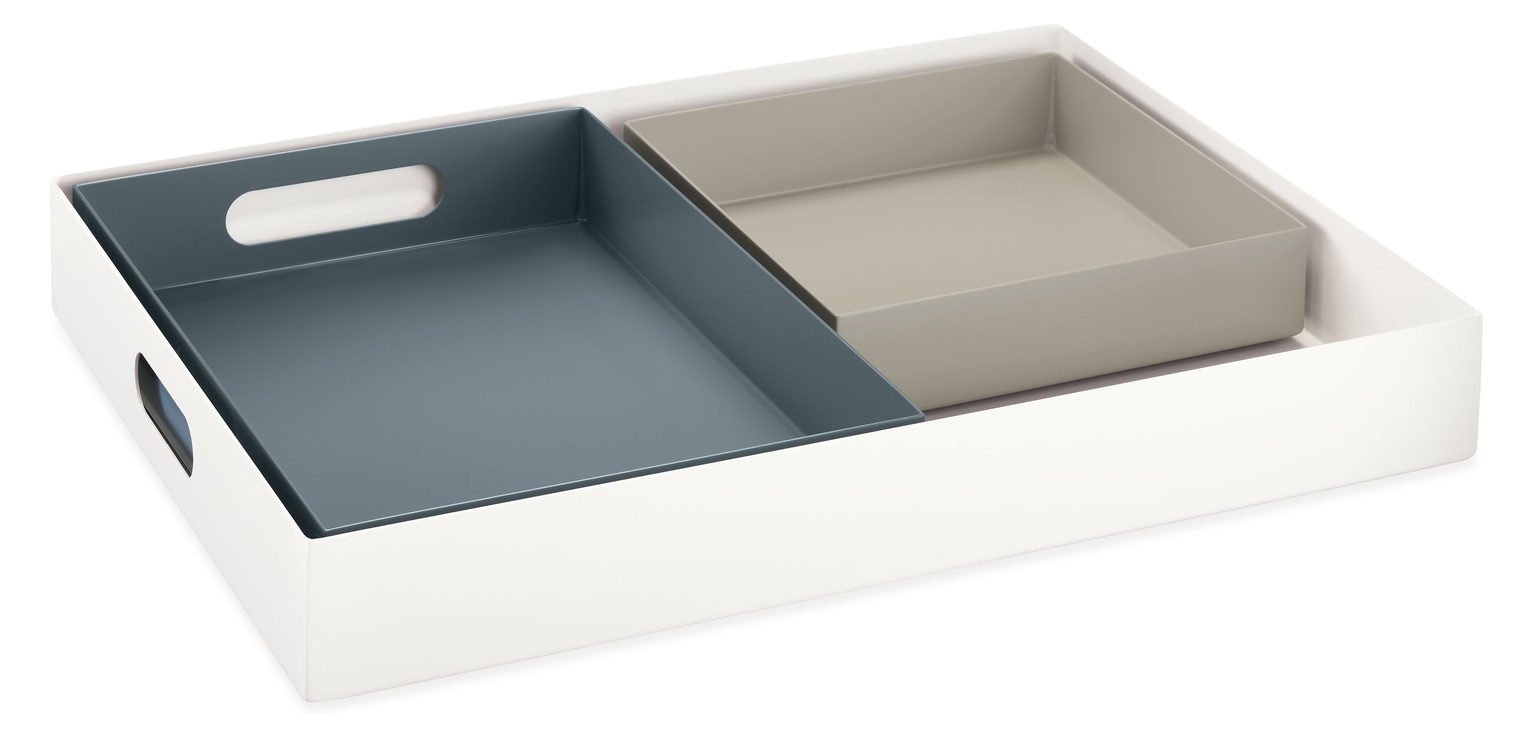 The simple yet versatile Russell steel tray is handcrafted in Minnesota. The open handles and spacious interior make it perfect for carrying, serving and display, while the range of timeless finishes and colors let you personalize it.