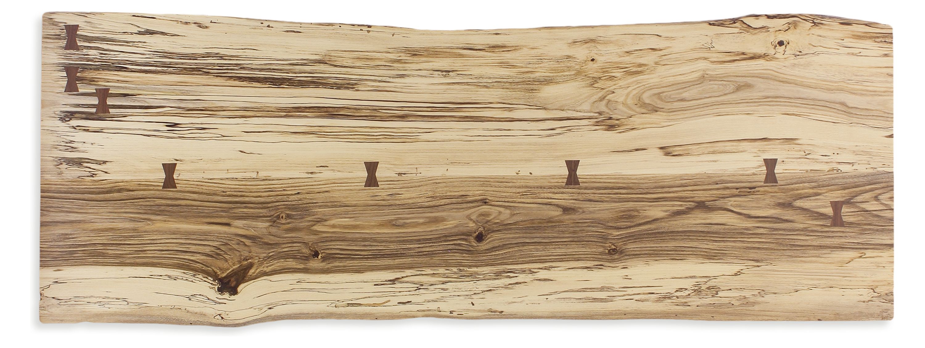 Every Chilton table is as unique as the tree from which it came. The tabletops are created with solid slabs of wood and showcase natural markings like knots, splits and distinct grain patterns. Any areas that require extra stabilization are braced with functional and beautiful butterfly joints cut from a complementary wood. Every Chilton table is one of a kind, so you can choose the exact top you like best.
