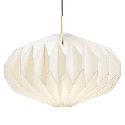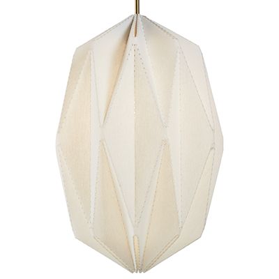 Developed in California, these origami-inspired pendants add eye-catching drama to your home. Beautiful material is laser-cut and then carefully folded and stitched together, creating functional works of art. Light glows through both the shade and the laser-cut folds, creating an interesting pattern on the ceiling and walls. You can only find these pendants at Room & Board. This set includes a double ceiling canopy to install both pendants to one junction box.
