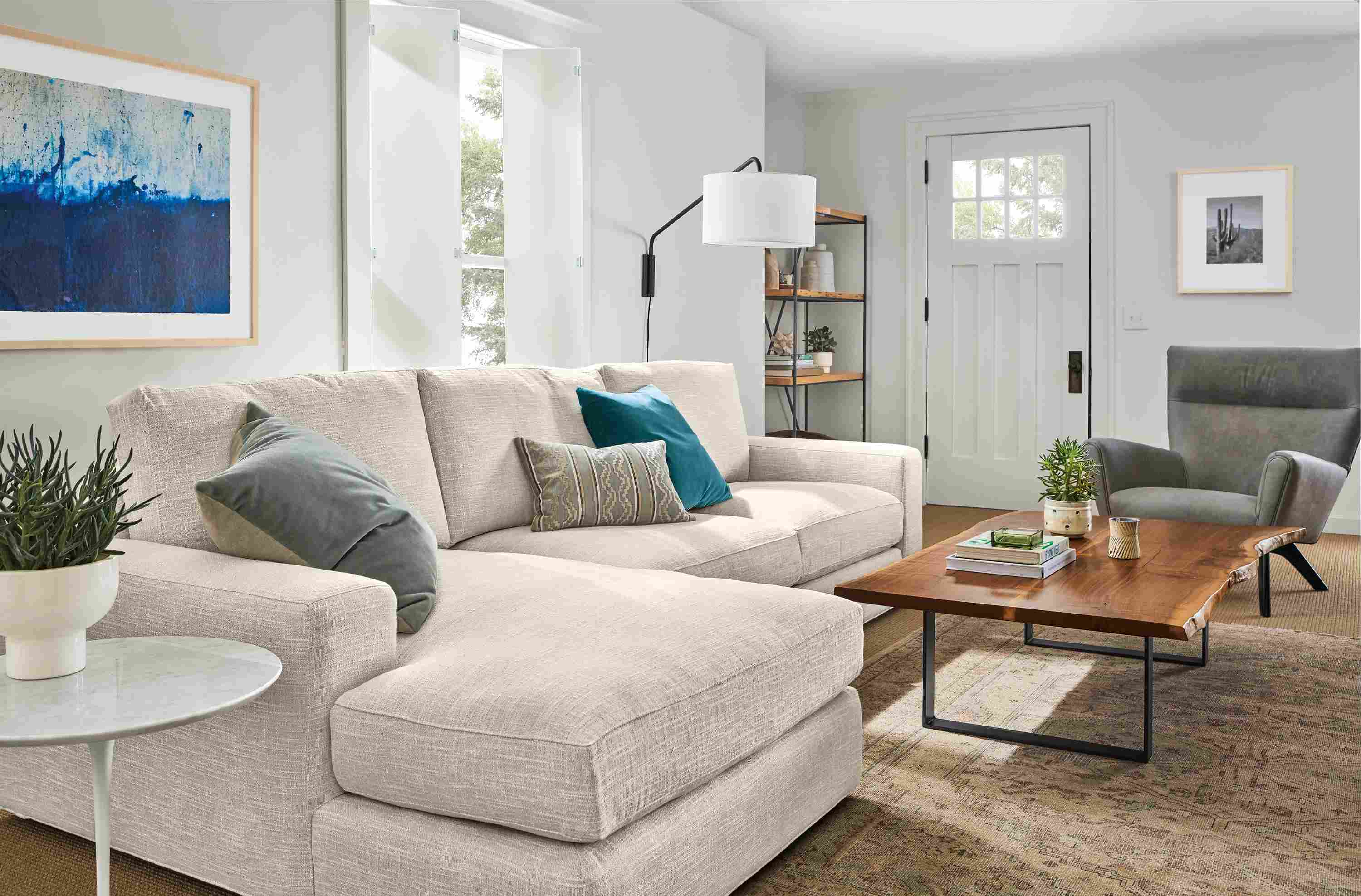 With a four-foot reach, this modern wall sconce can easily provide lighting over a sofa or dining table without taking up valuable floor space. The steel arm swings from side to side, which allows you to adjust the placement of the light. The drum shade casts a warm glow over the room and it has a diffuser to soften the light from the bottom. This sconce adjusts with a dimmer dial switch and includes an energy-efficient LED bulb.