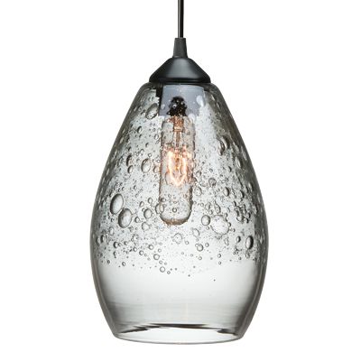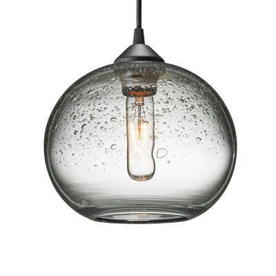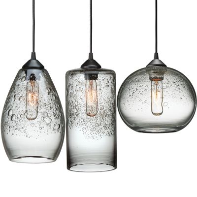 By carefully blowing glass and allowing air bubbles to appear only in certain areas, the artisans at Hennepin Made have created beautiful, modern pendants with unique texture. It takes skill and practice to make these functional works of art. This set of pendants is mounted to a circular ceiling canopy.