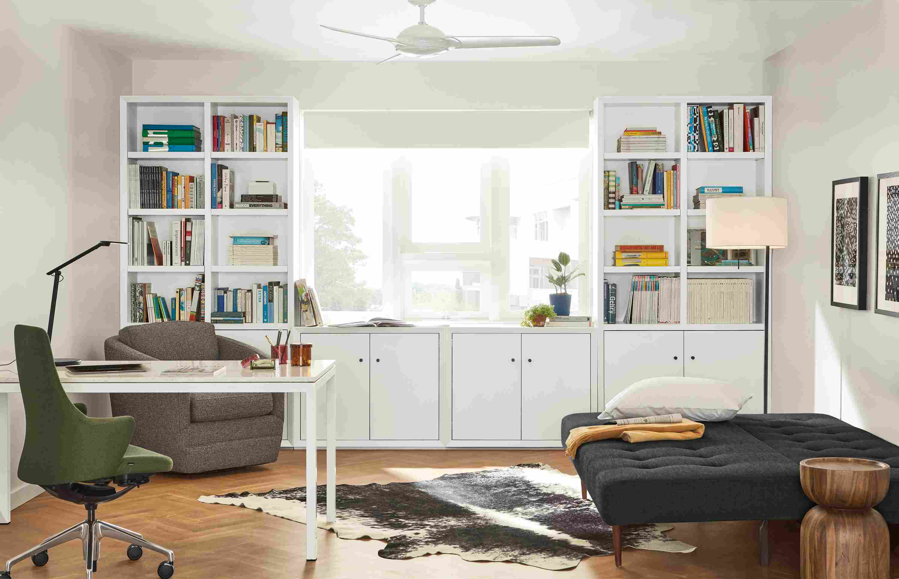 Our energy-efficient ceiling fans improve your home's heating and cooling systems to make you more comfortable year-round. The minimalist design of Flow features a low-profile shape that blends easily into any room. Includes down rod extensions for height adjustment and a white wall plate and switch, with or without remote control. You can also choose blade and body finishes to best suit your style, available with or without a light.
