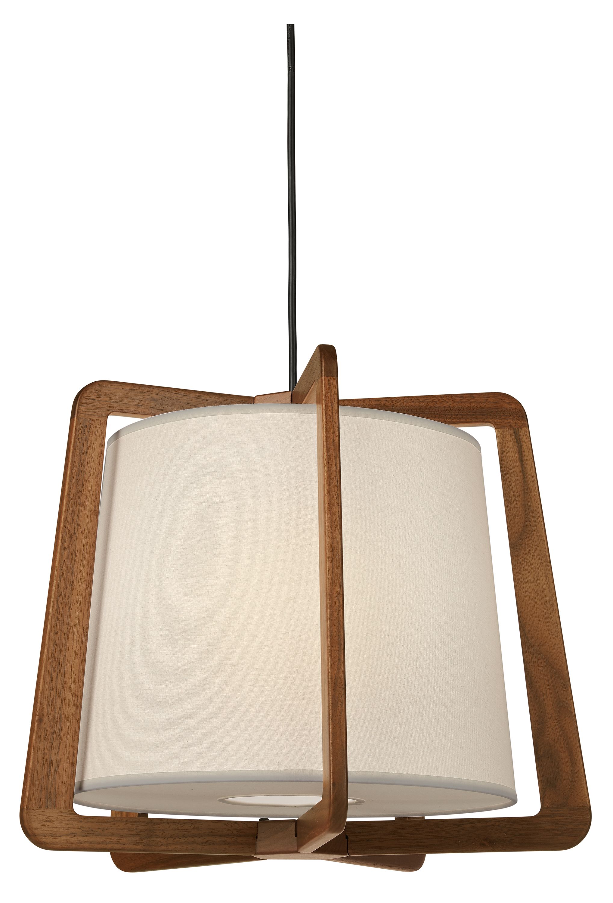 Bring the warmth and sophistication of wood into your lighting with the Fairbanks pendant. The beautifully crafted outer frame encapsulates a fabric drum shade, perfectly offset from all sides of the frame and precisely suspended. The pendant version of a ship in a bottle, Fairbanks comes together with a hint of mystery. A bottom diffuser makes it perfect for dining rooms.