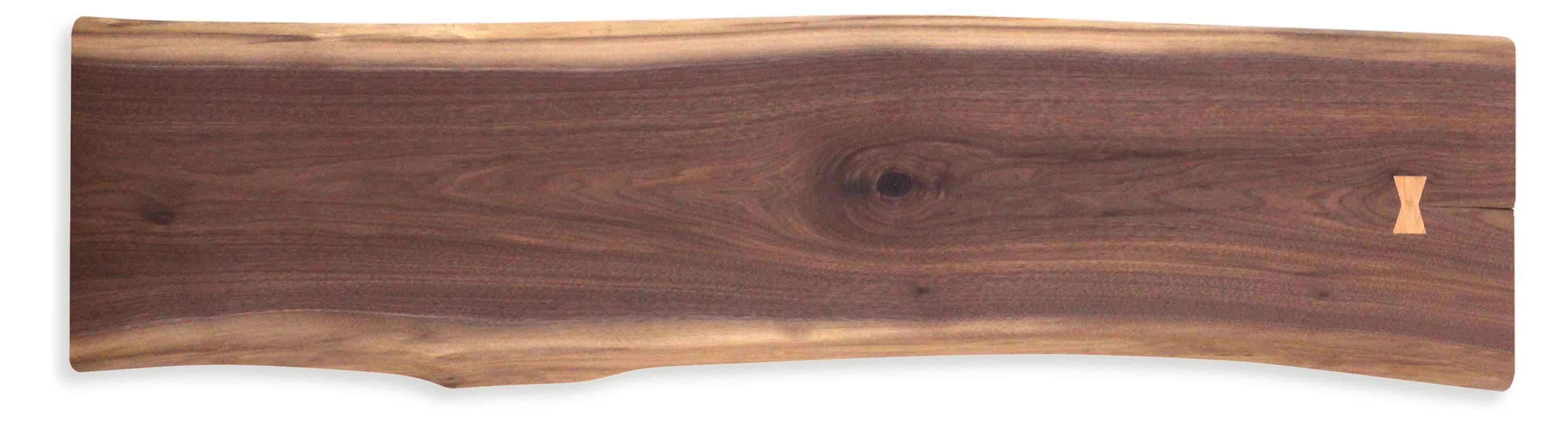 Areas that require extra support are braced with butterfly joints cut from a complementary wood.