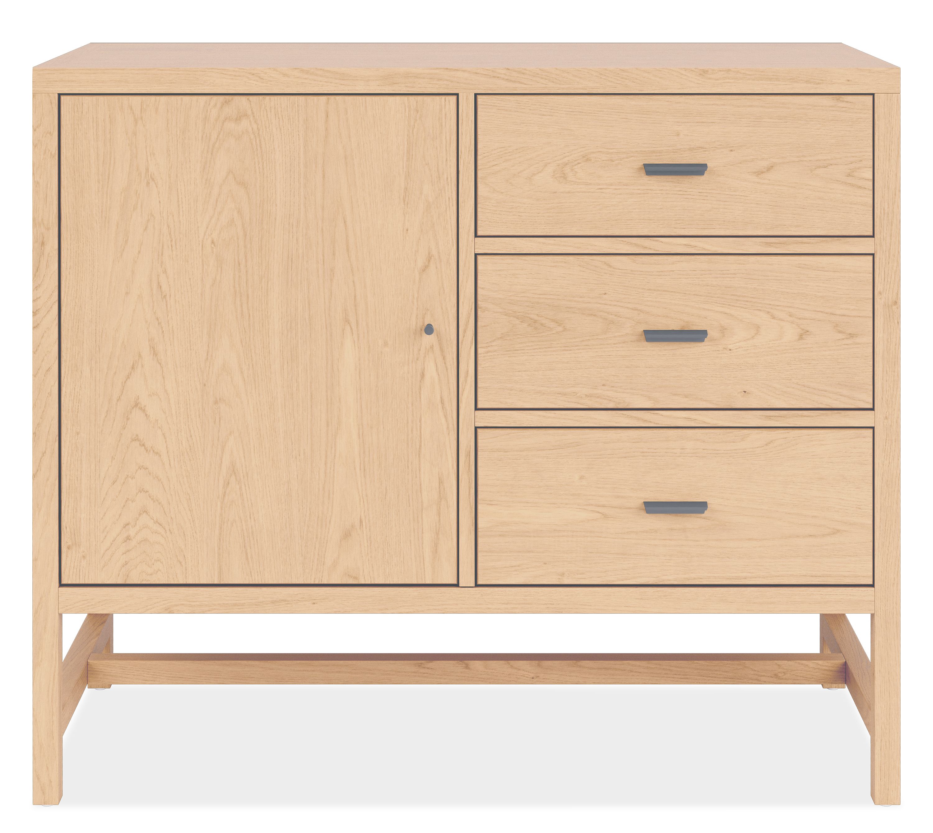 - Drawer Details: full-extension ball-bearing glides; lacquered interior; 100-lb capacity