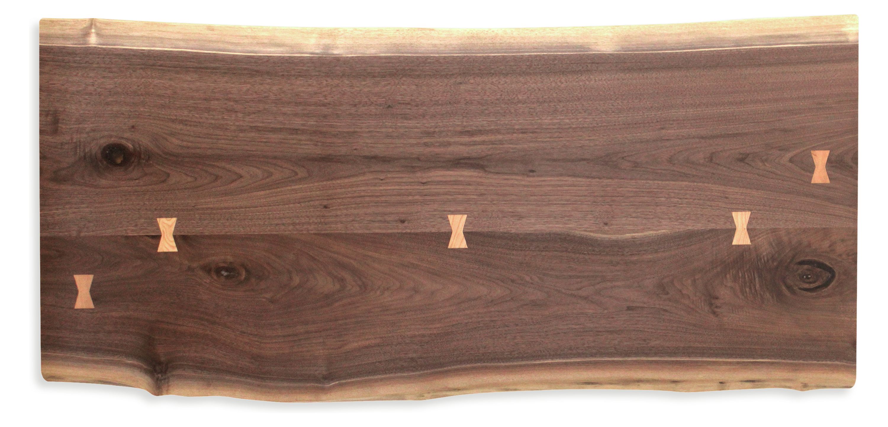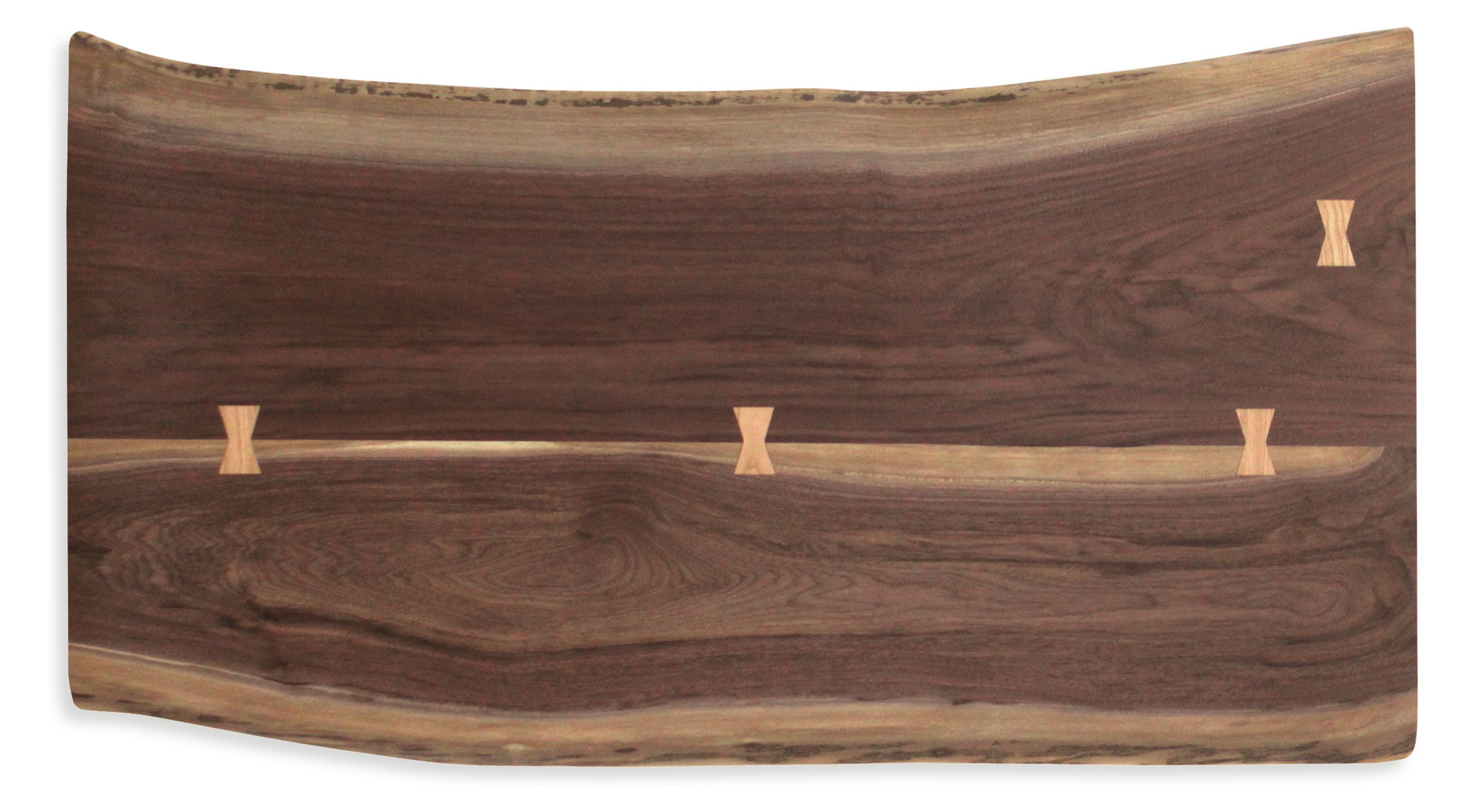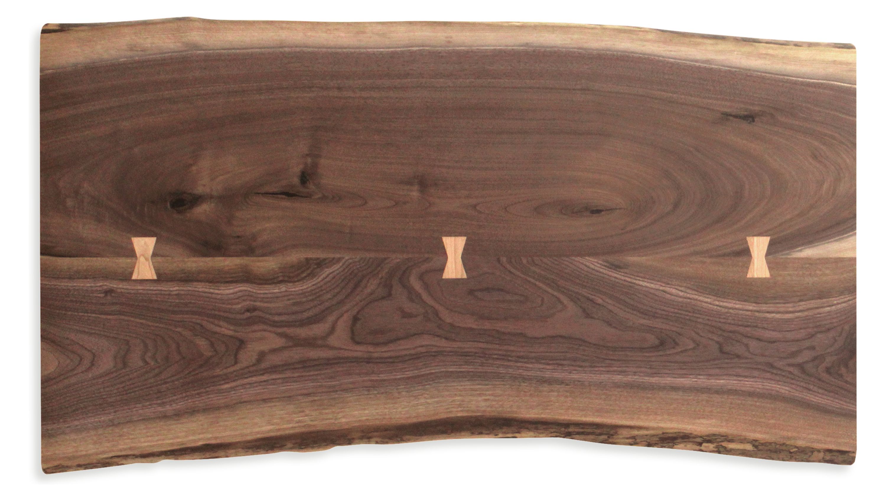 Areas that require extra support are braced with butterfly joints cut from a complementary wood.
