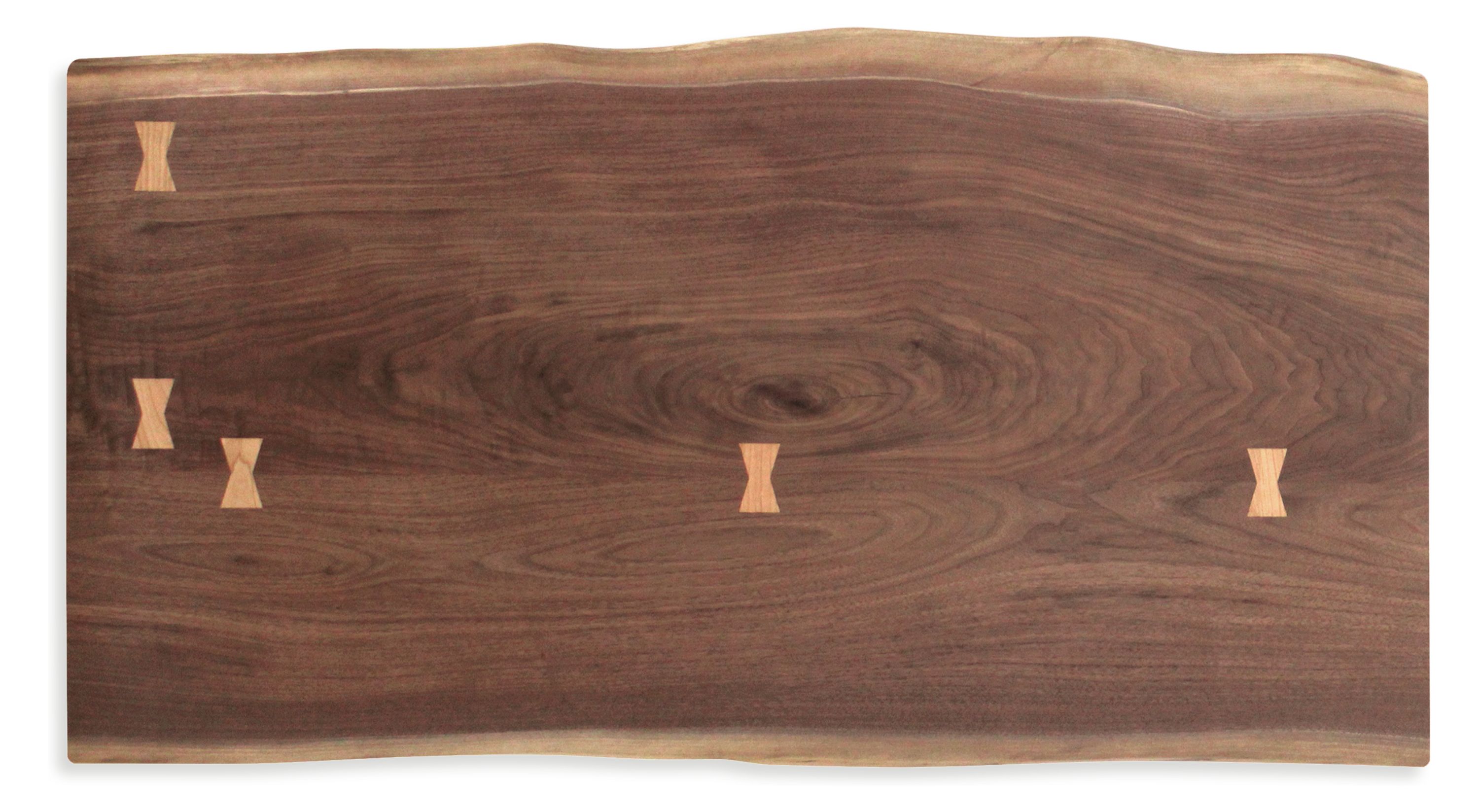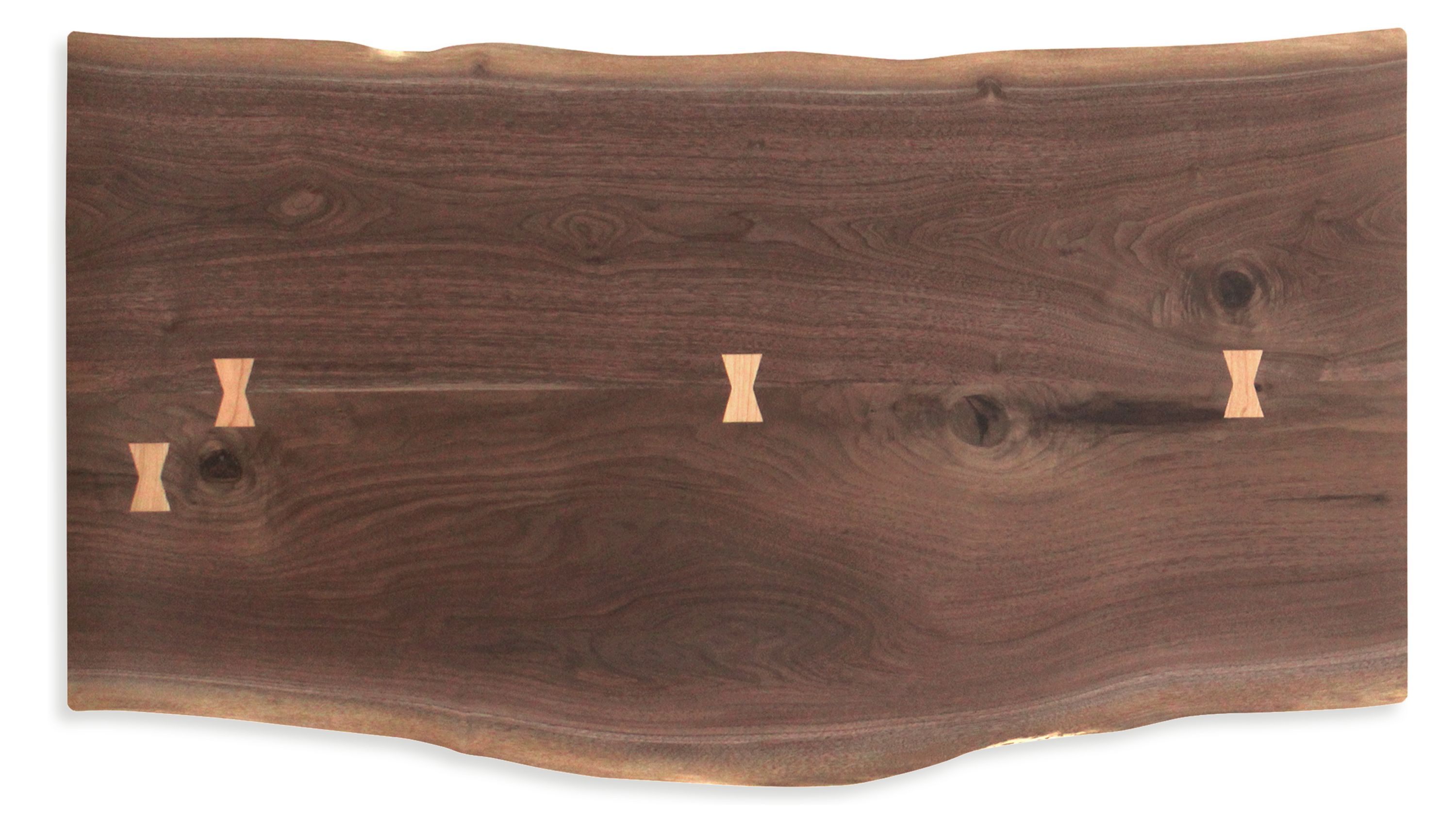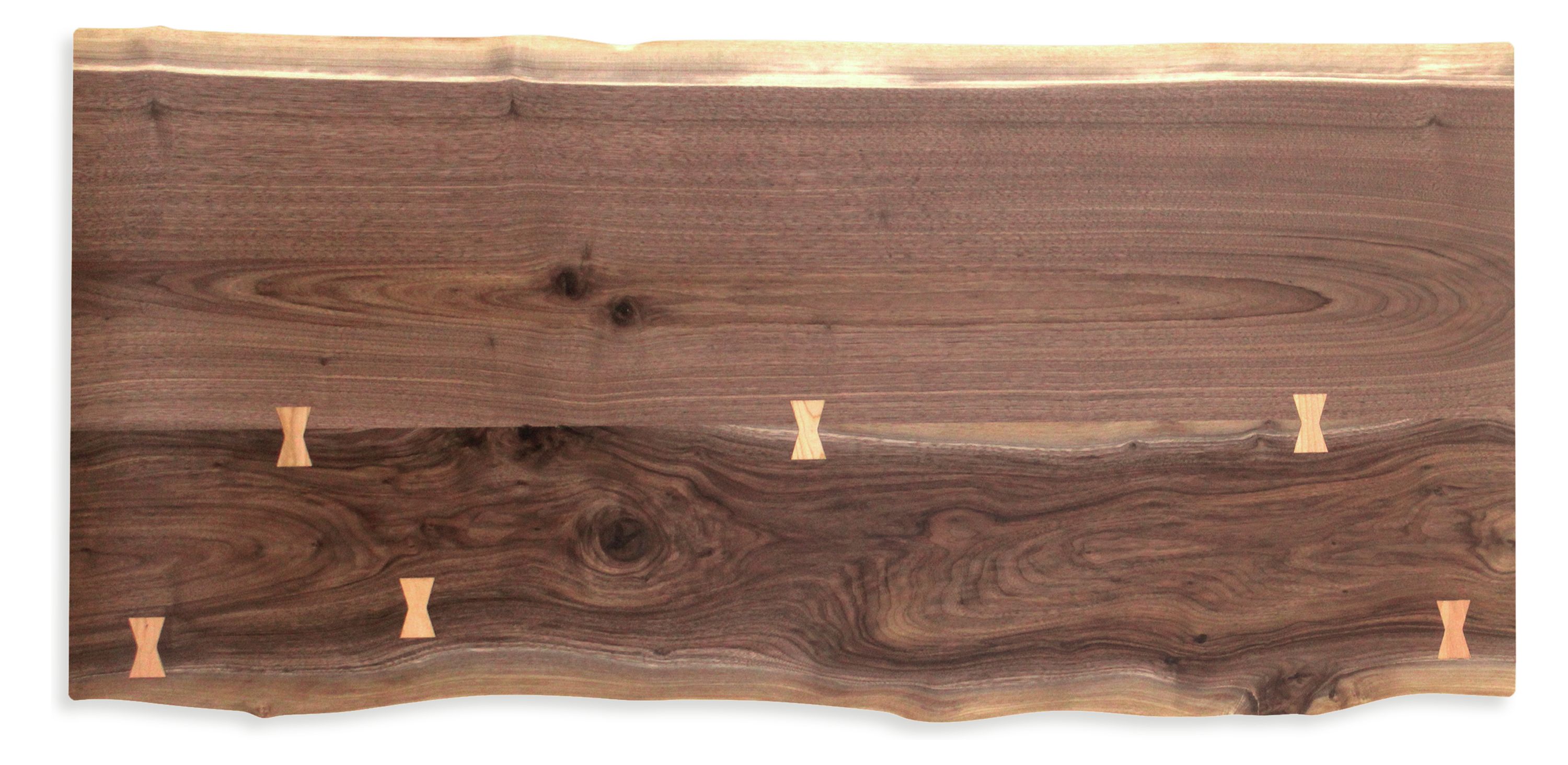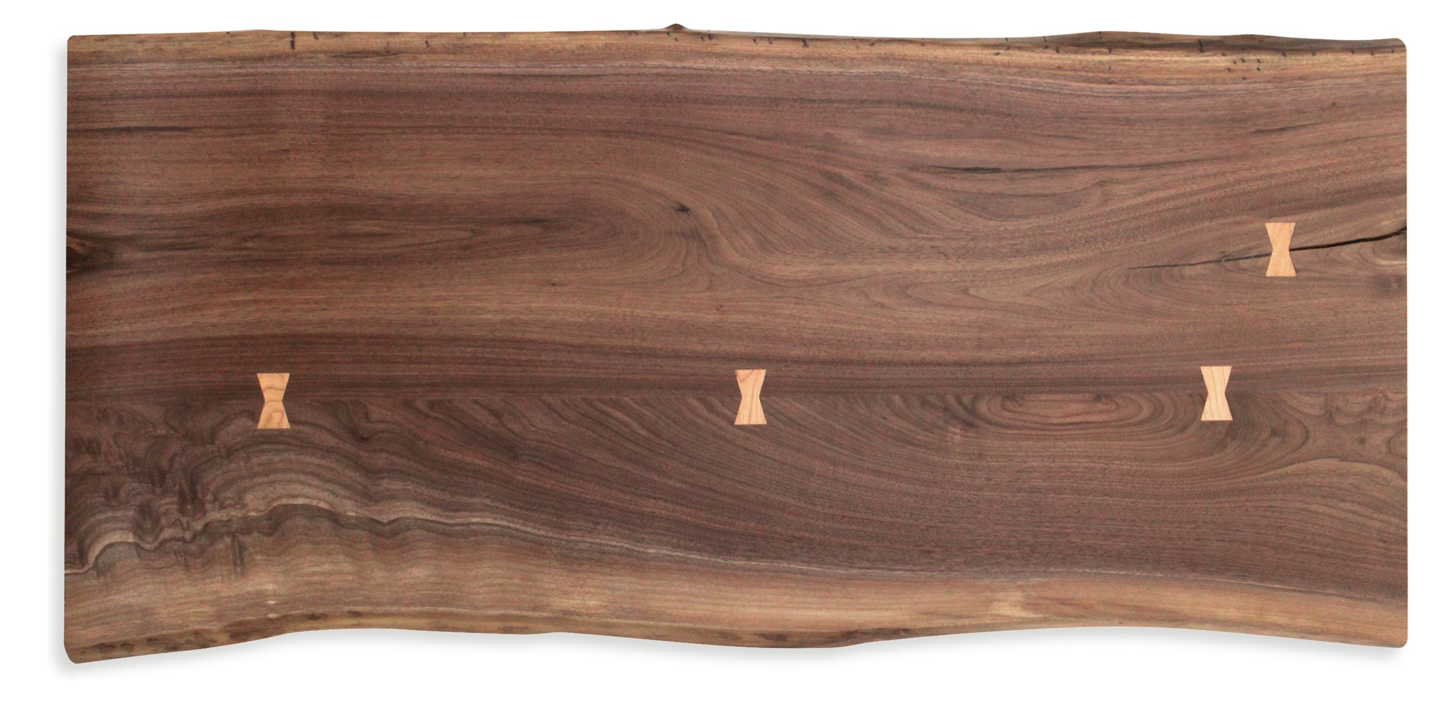Areas that require extra support are braced with butterfly joints cut from a complementary wood.