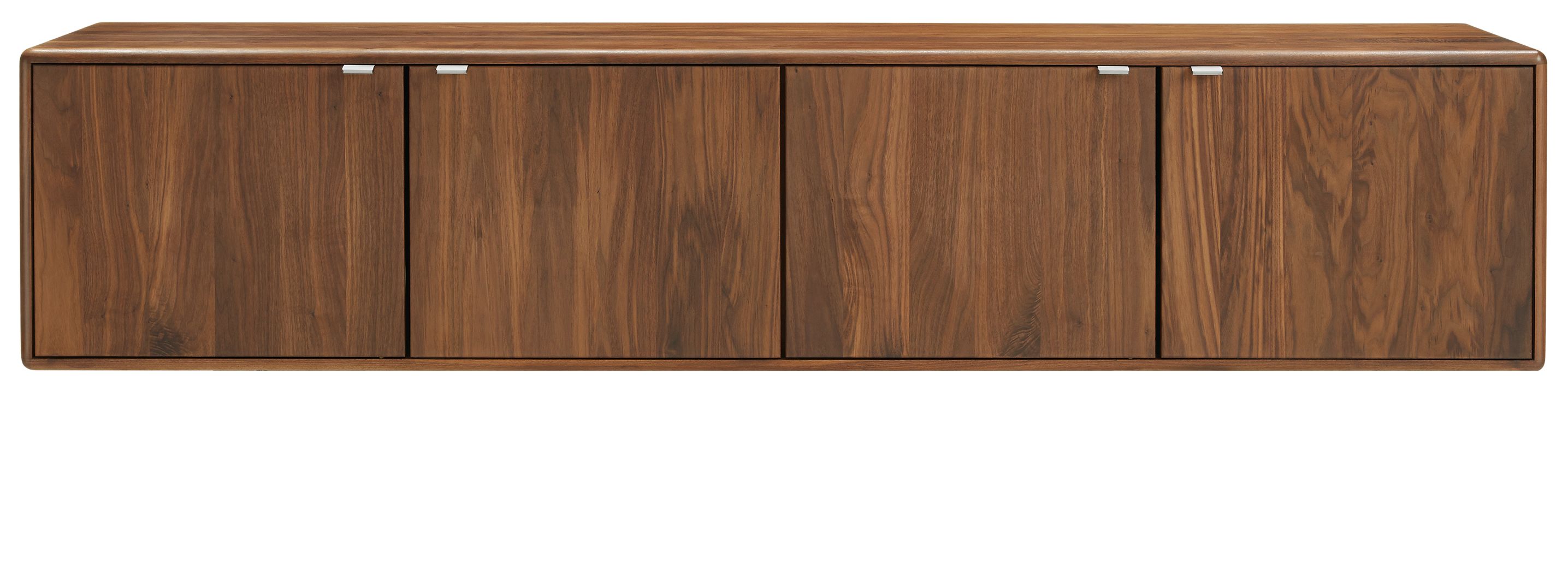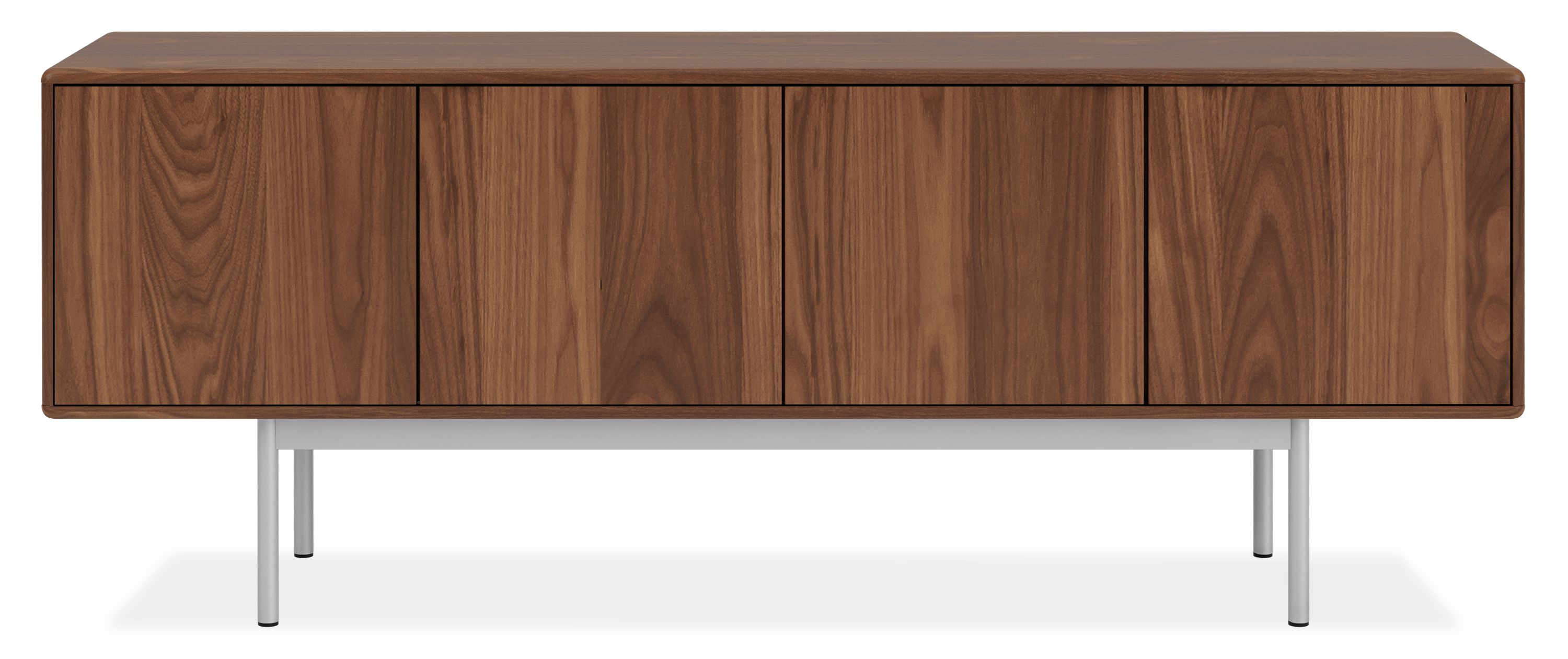 Our Hensley media cabinet brings a soft and modern silhouette to your home. Inspired by the timeless appeal of mid-century design and infused with modern details, Hensley features a stunning mix of materials that give it an updated look for today. You'll love the smooth feel of the domestically sourced solid wood, and appreciate the durability and beauty of the brushed stainless steel or powder-coated graphite base. Softly curved door pulls mimic the rounded edges of the media cabinet to round out this sophisticated storage option.