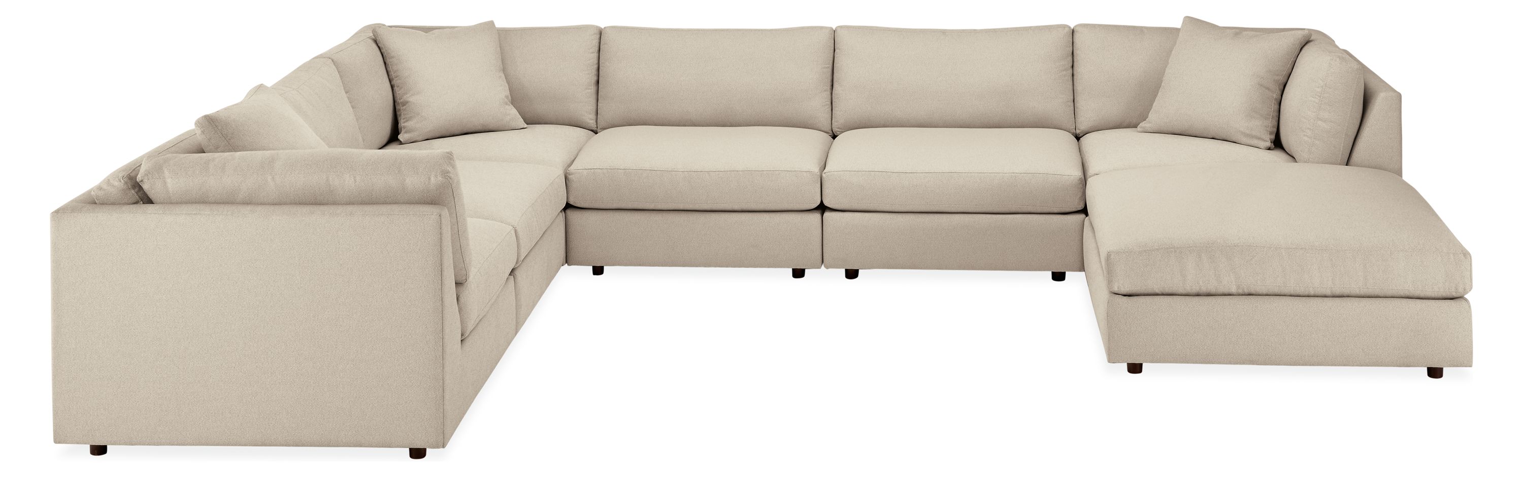 A large, u-shaped Linger sectional anchors this open-concept living room. It helps define the lounge area from the dining space while offering everyone a comfortable place to gather.