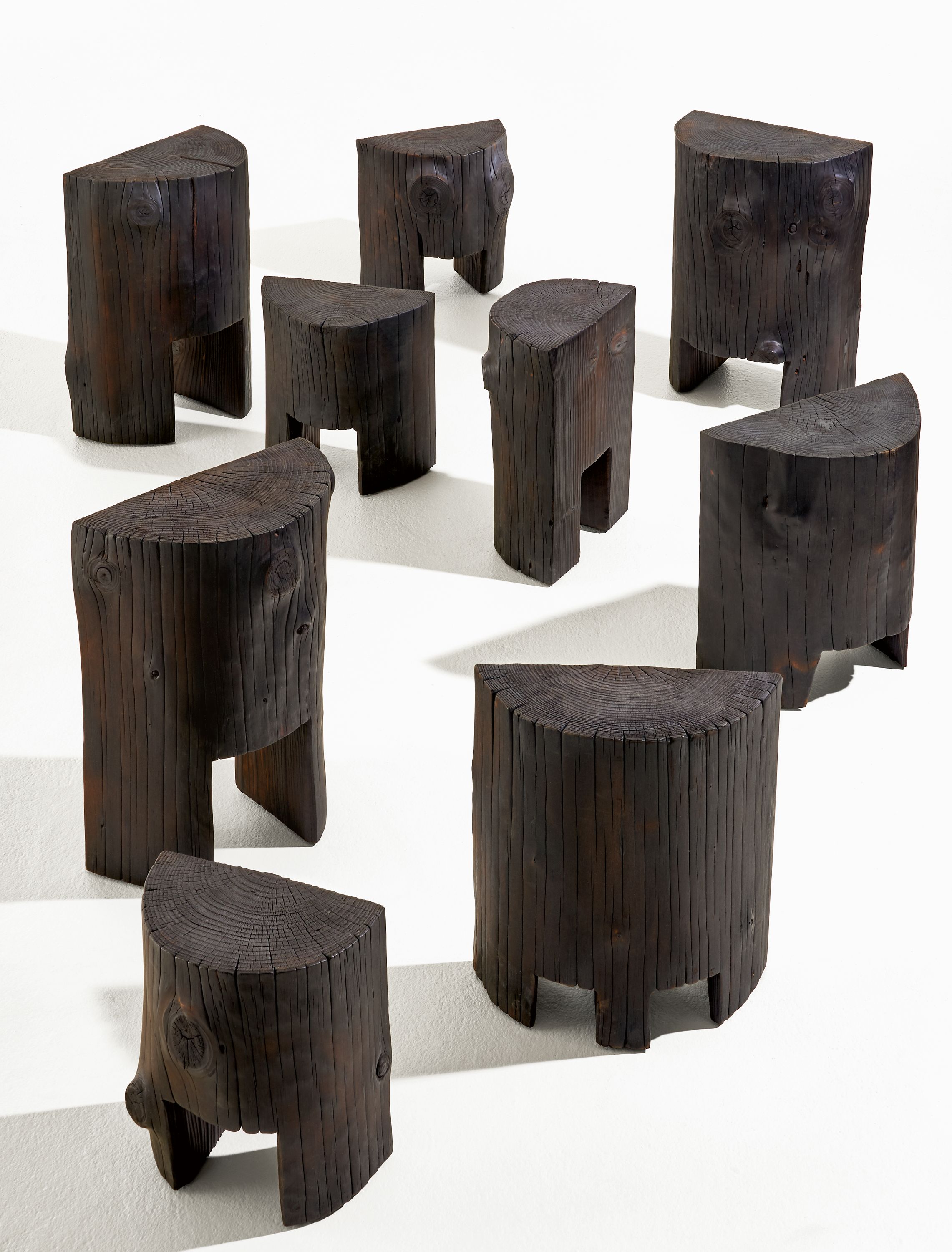Riccardo Monte crafts each one-of-a-kind Casetta end table by hand in his studio in the Italian Alps. One by one, he selects perfect pieces of solid spruce. He then cuts each piece and finishes it with the Shou Sugi Ban charring technique, the ancient art of preserving timber with controlled fire.
