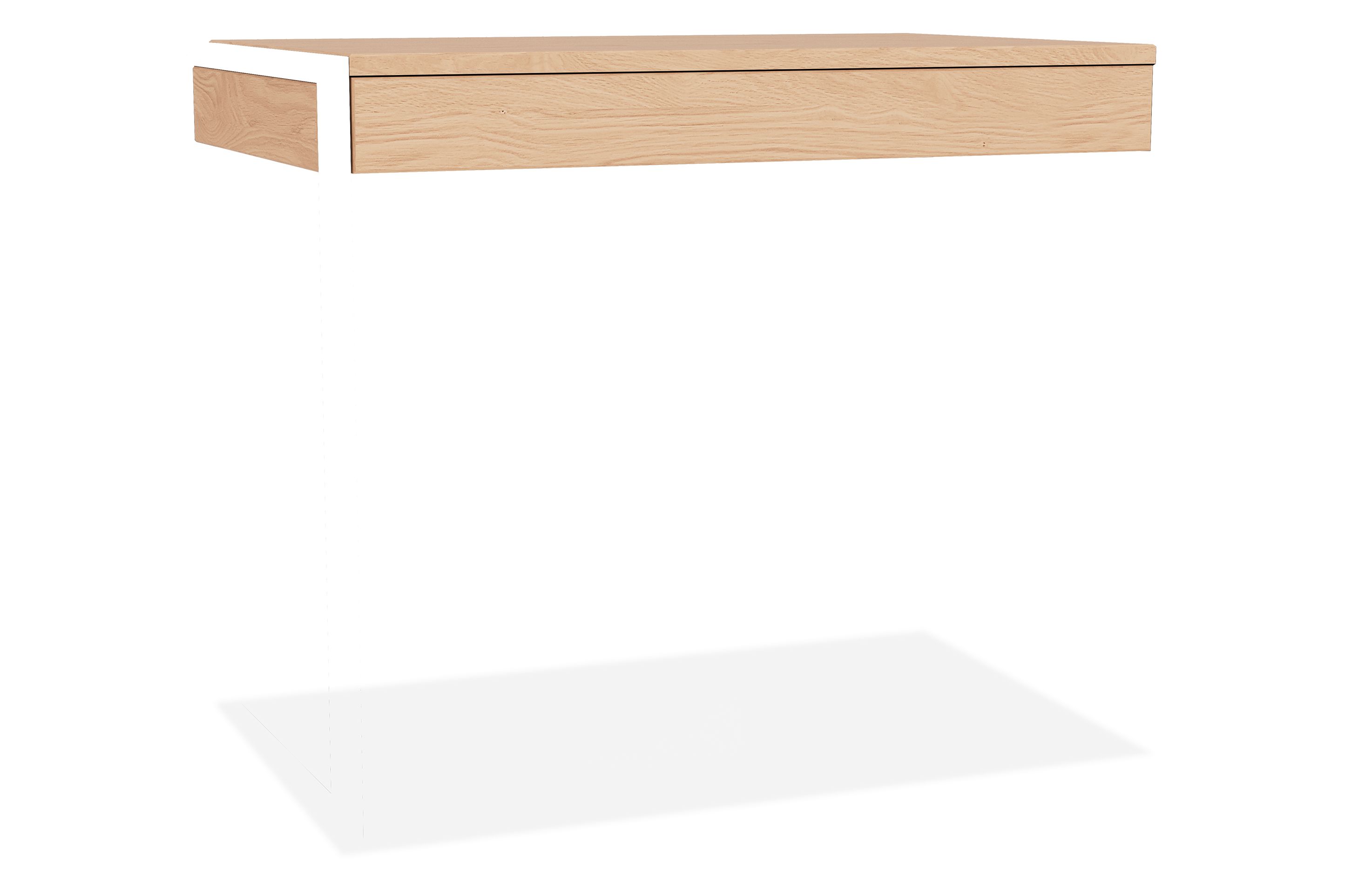 Perfect for small spaces, Basis can be a desk or a console table. Either way, the interplay of natural wood and smooth steel creates a surface you'll love. The drawer stores paperwork as well as your laptop.