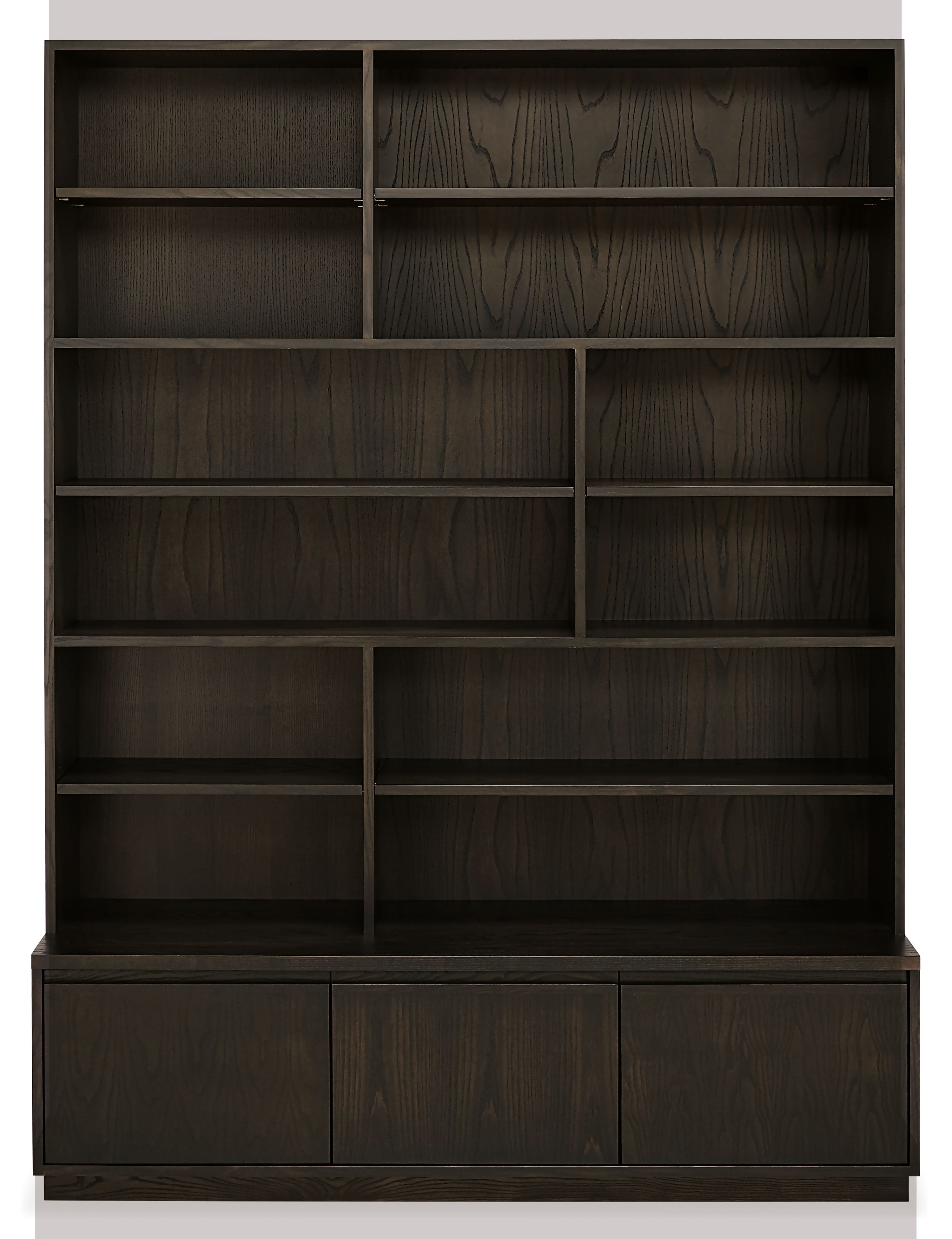 Sleek modern design highlighted in a thin silhouette gives you endless storage options with our Keaton bookcase. Perfect to place in a living room, entryway, bedroom or office, Keaton's clean, architectural lines give this bookcase the feel of a built-in no matter where you place it. Shelves can be adjusted or removed to create your ideal storage solution, allowing you to create a unique configuration from a variety of shelf sizes that work just right for you. Each piece is handcrafted in a northern Wisconsin woodworking shop, and it includes hardware to securely attach to the wall.