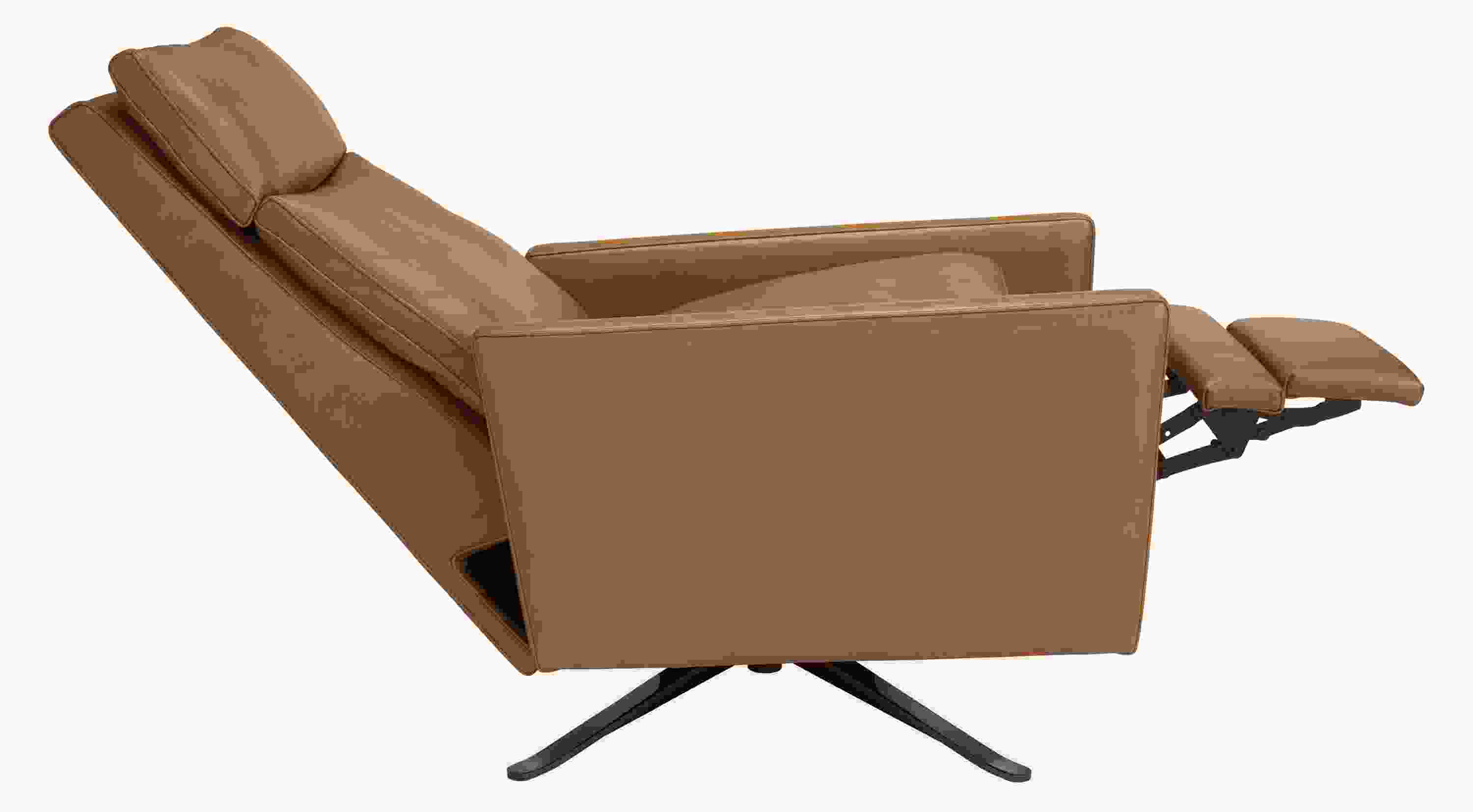 With a classic, sophisticated design and soft silhouette, our Isaac leather recliner invites you to lean back and relax. The semi-attached back and expertly constructed frame offer the best in lounge-worthy comfort. Simply push back to recline, with no need for a lever.