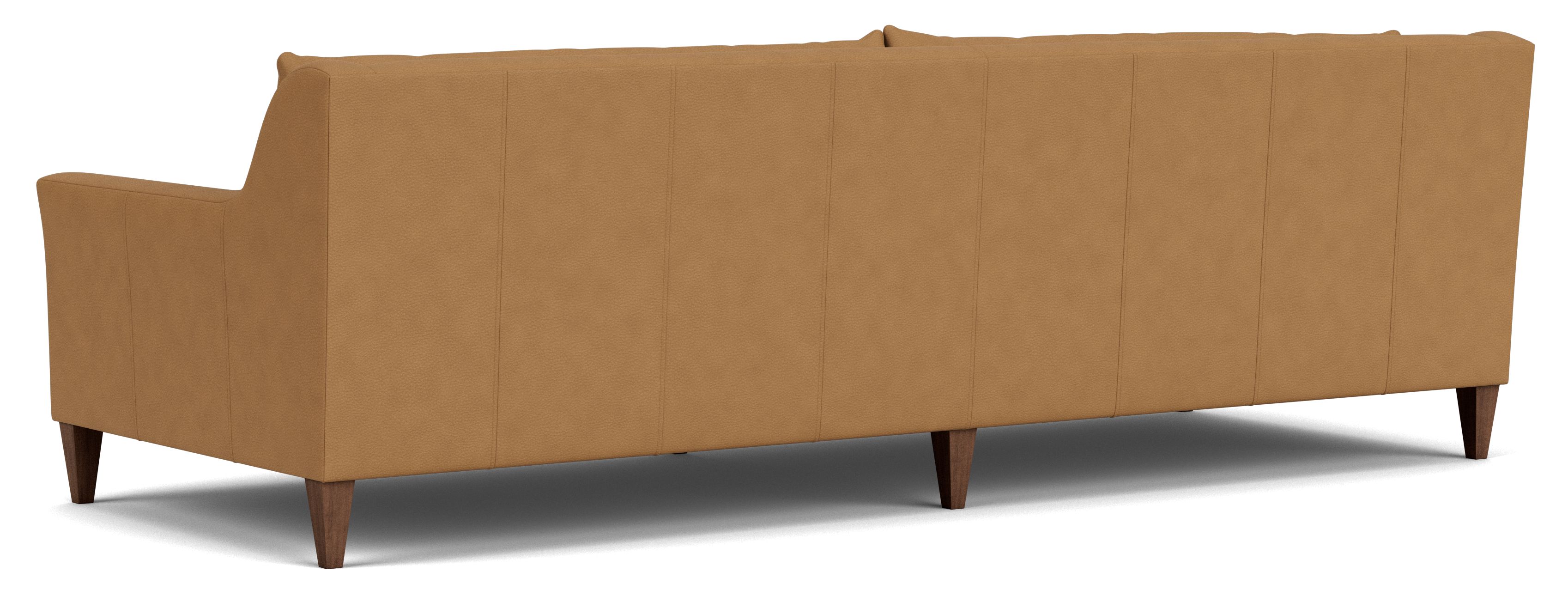 Sybil blends classic details with modern comfort. Flared arms lead to a sloped back, where beautiful knife-edge cushions contrast the inviting, rounded bench seat. This elegant leather sofa provides a timelessly appealing place to lounge.