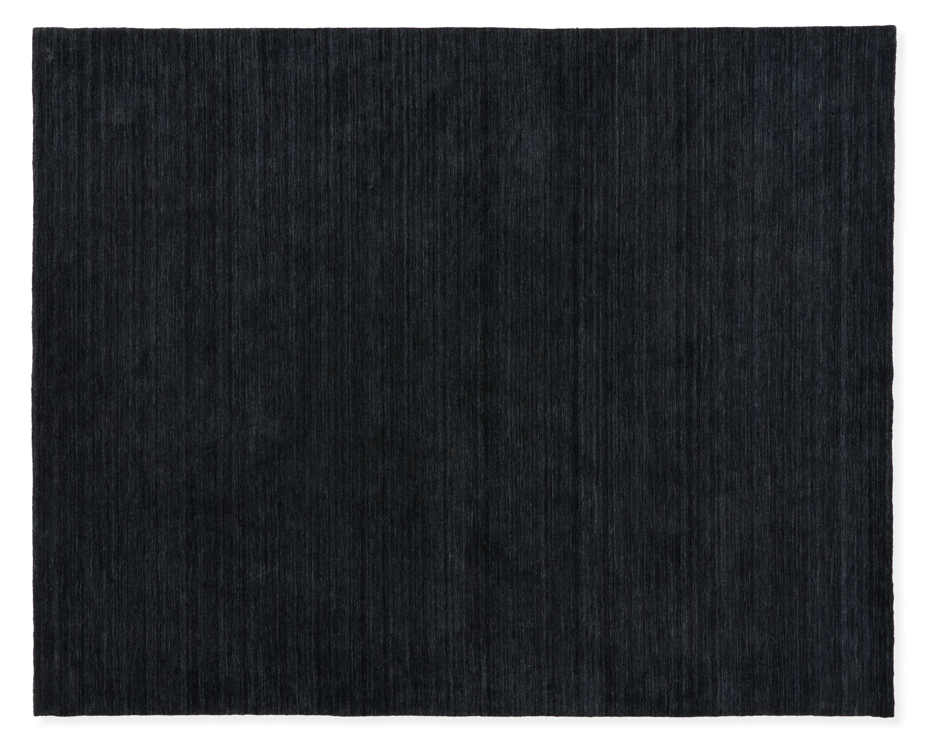A dark, richly colored rug like this one is a bold choice that helps visually quiet a space, and it would be extra cozy at night with the fireplace.