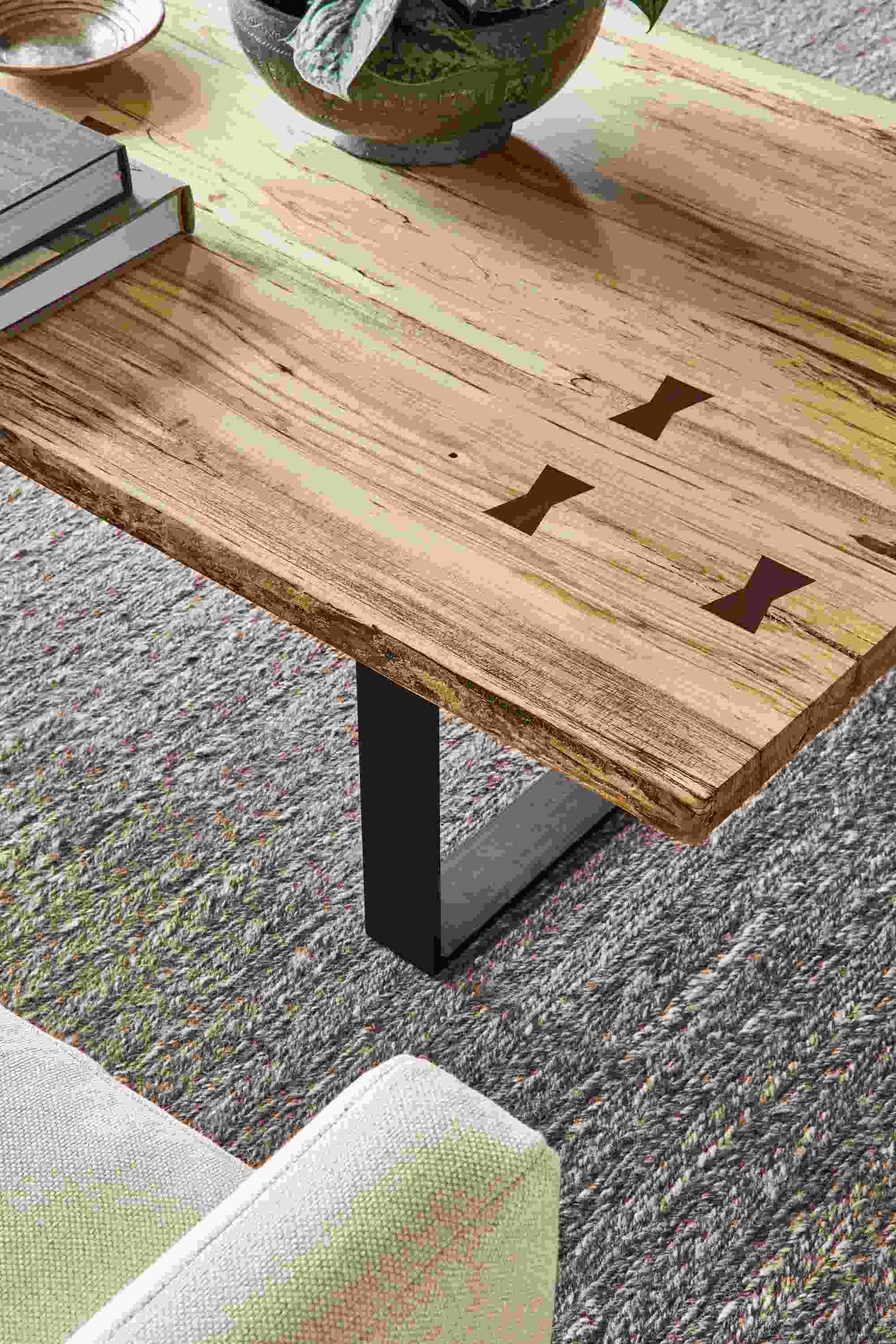 Each Chilton coffee table features a shape and grain as unique as the tree it came from. A solid slab of wood is sanded and finished, braced with butterfly joints in any areas requiring extra support, and secured to a hand-welded natural steel base. The best part? You can choose the exact top that you like best, for a one-of-a-kind look.