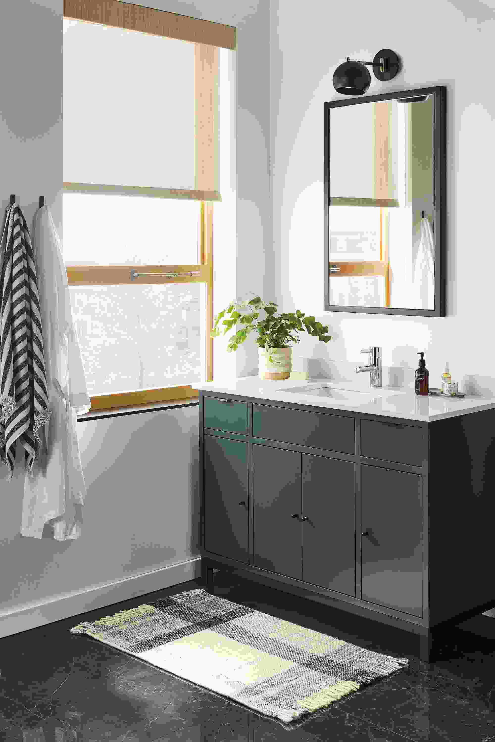 Welded in a family-owned metalworking shop, the Soho custom bathroom wall mirror has a modern streamlined look. You can choose precisely what size you want, down to the inch. Plus, the steel frame is available in a variety of finishes so you can personalize the mirror to your bathroom.