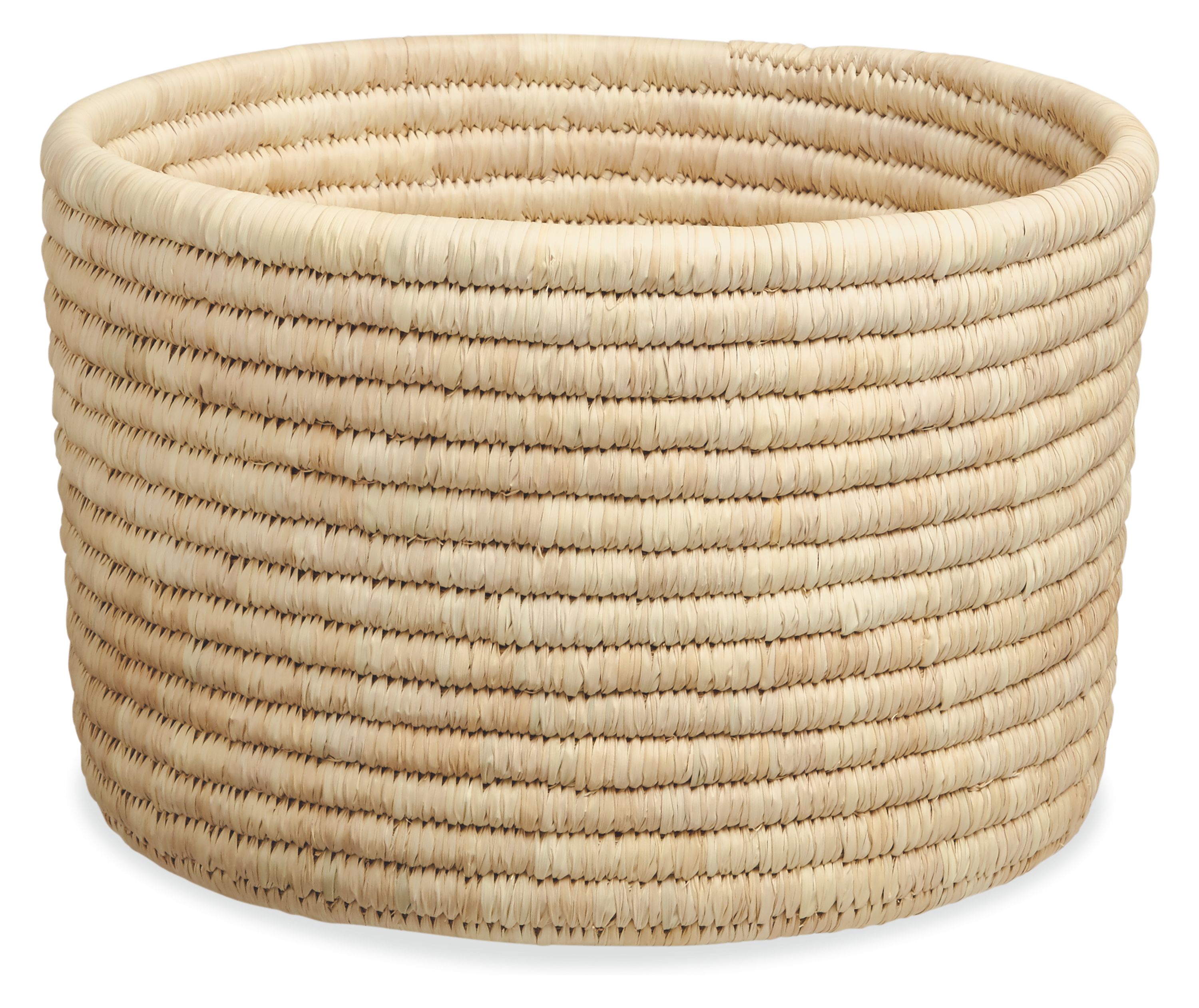 Discover beauty with a purpose. Hand woven in Bangladesh through Ten by ThreeTM, these baskets work as storage, planters or wastebaskets, and feature coil weaving in which date palm is wrapped around sea grass then sewn to the layer beneath. Using this traditional method, it takes about five days to weave one basket, which reflects the unique style and artistry of the weaver. Artisans working with Ten by Three receive a Prosperity Wage, which is at least 2.5 times the Fair Trade Wage, helping them provide for their families and invest in their own businesses. Every basket includes a tag with a photo and short biography of the artist, plus a unique code to learn more about that person. We’re proud to partner with Ten by Three to bring you these one-of-a-kind storage baskets.