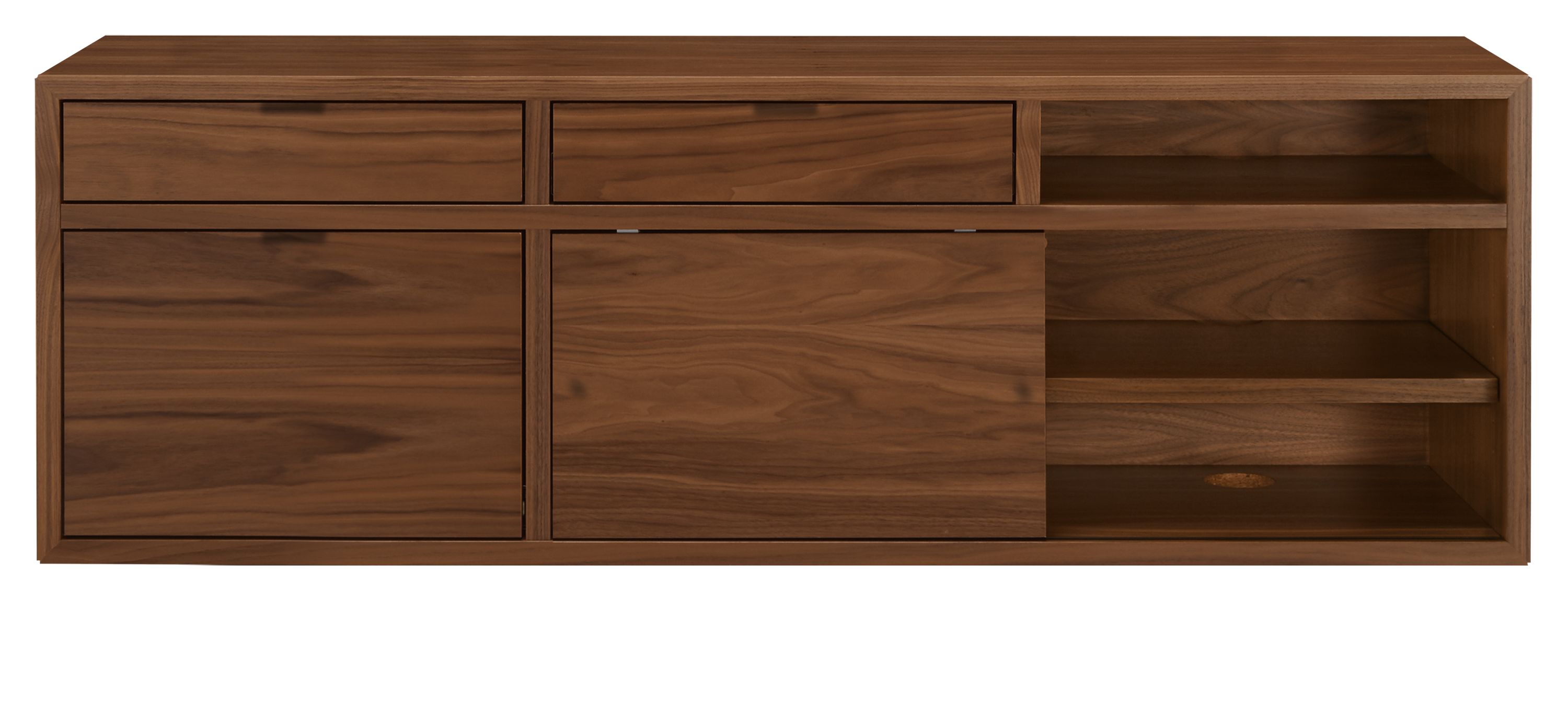 Modern, functional and effortlessly stylish, the Copenhagen file bench offers a file drawer plus extra storage with a concealing sliding door. There are cord openings in the bottom of the cabinet and through the back of each shelf, and the finished back means you can place Copenhagen anywhere.
