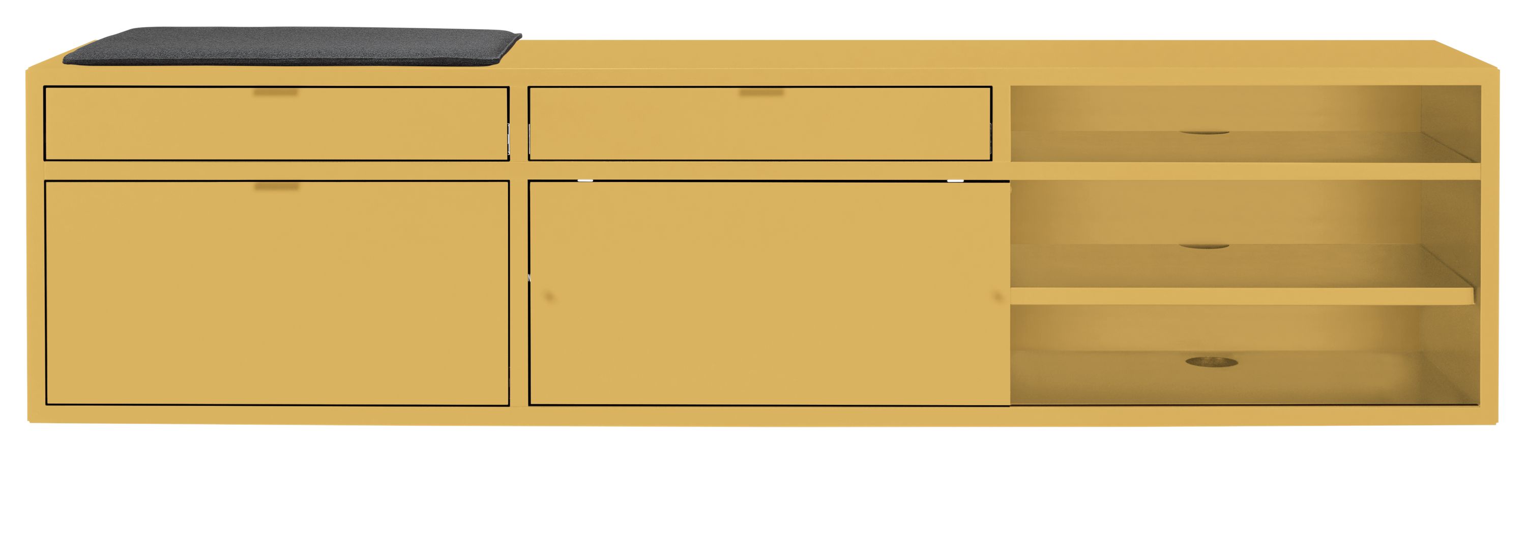 Modern, functional and effortlessly stylish, the Copenhagen file bench offers a file drawer plus extra storage with a concealing sliding door. There are cord openings in the bottom of the cabinet and through the back of each shelf, and the finished back means you can place Copenhagen anywhere.