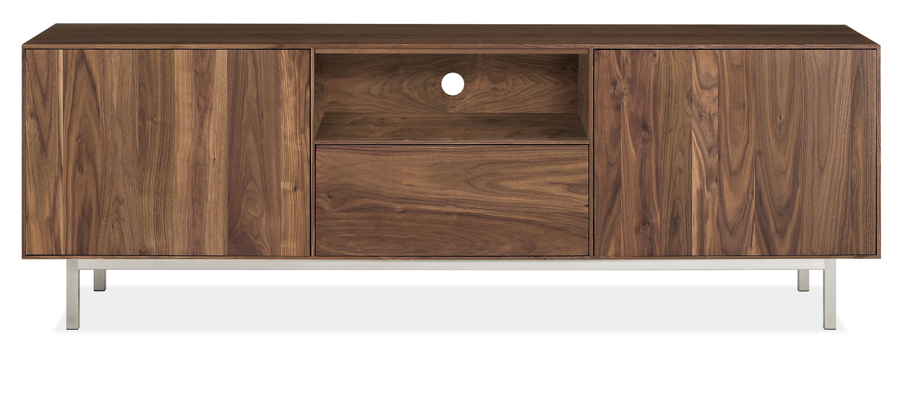 Built to be rock solid, this modern media cabinet is handcrafted in West Virginia by skilled artisans, who share their pride by signing the back of each piece. The natural grain of sustainably sourced U.S. solid wood is the perfect backdrop for the sleek, timeless design of this collection.