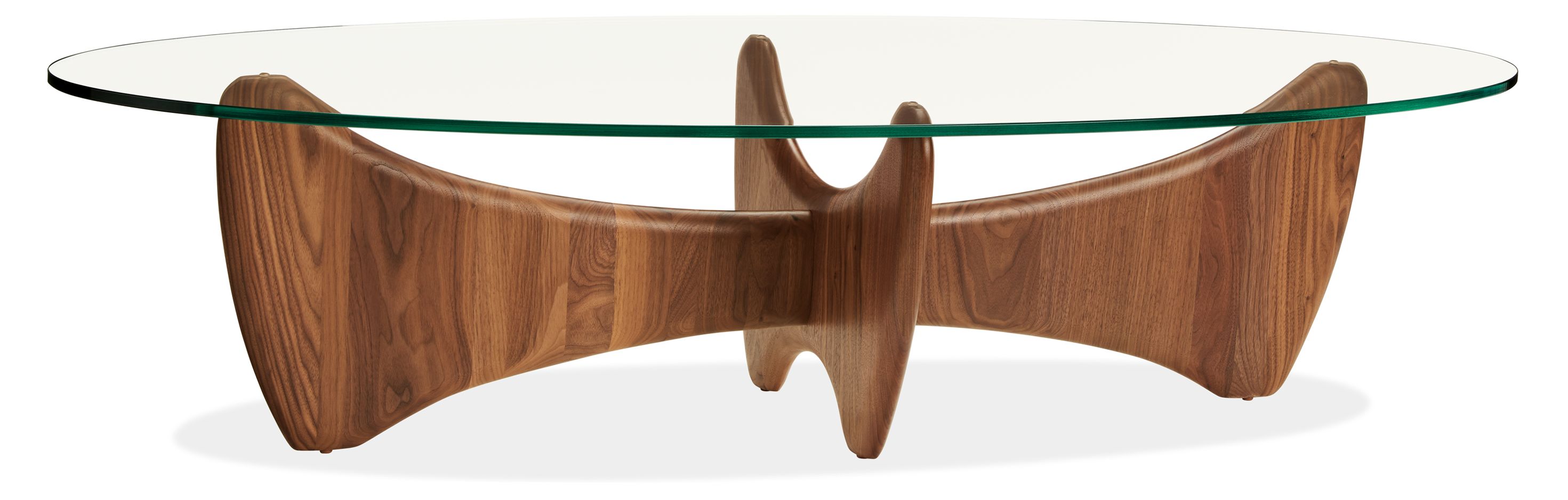 The sculptural shape of our Sanders coffee table is inspired by mid-century design. Thick slabs of solid wood are shaped by master West Virginia woodworkers into fluid shapes with rounded bull-nose edges, giving Sanders a stunning silhouette. A tempered glass tabletop showcases the distinctive base.