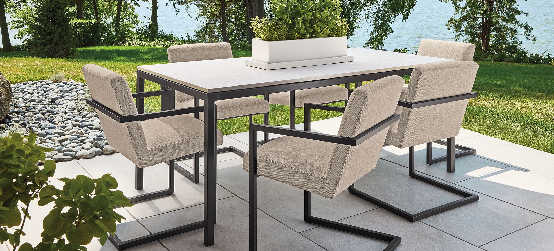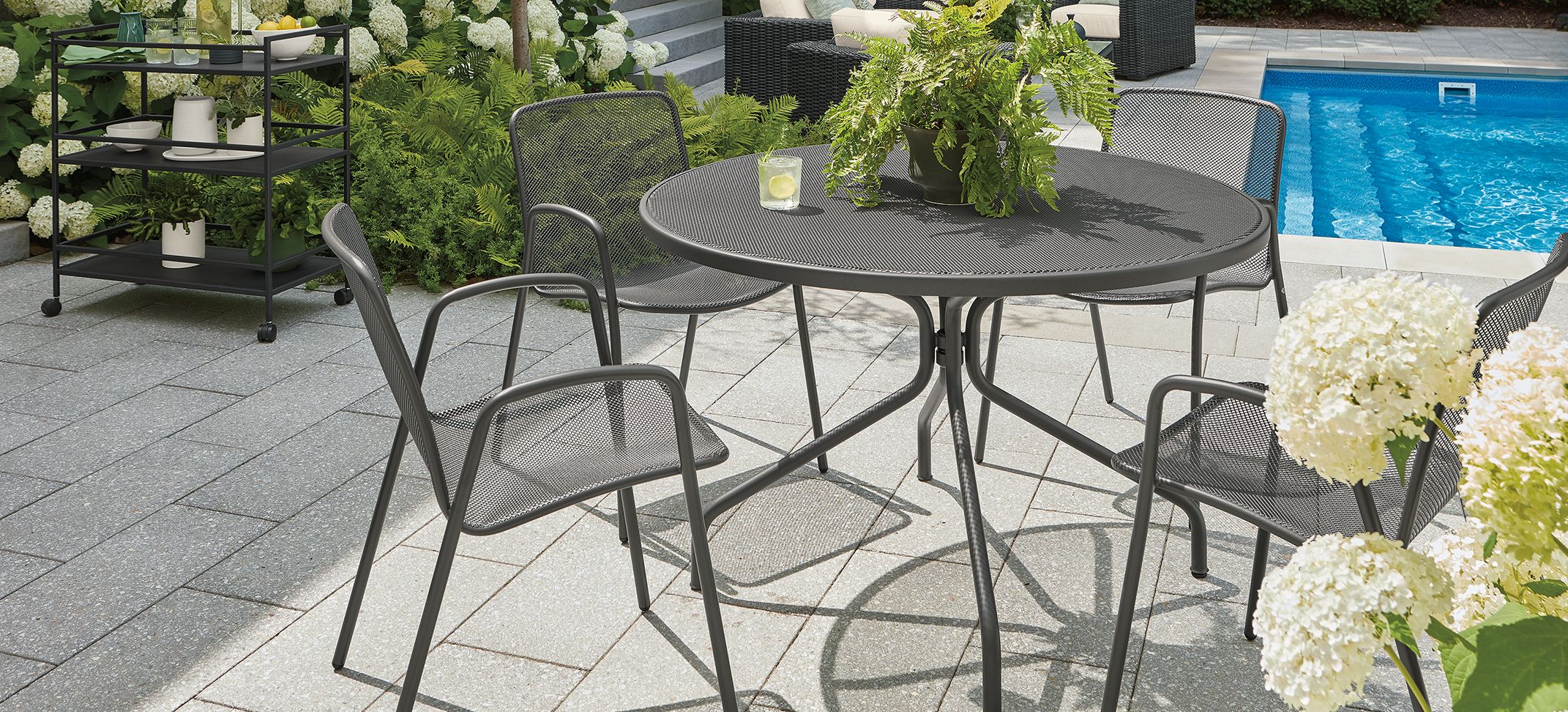 Pull together a cohesive look with outdoor-quality steel in a monochromatic palette.