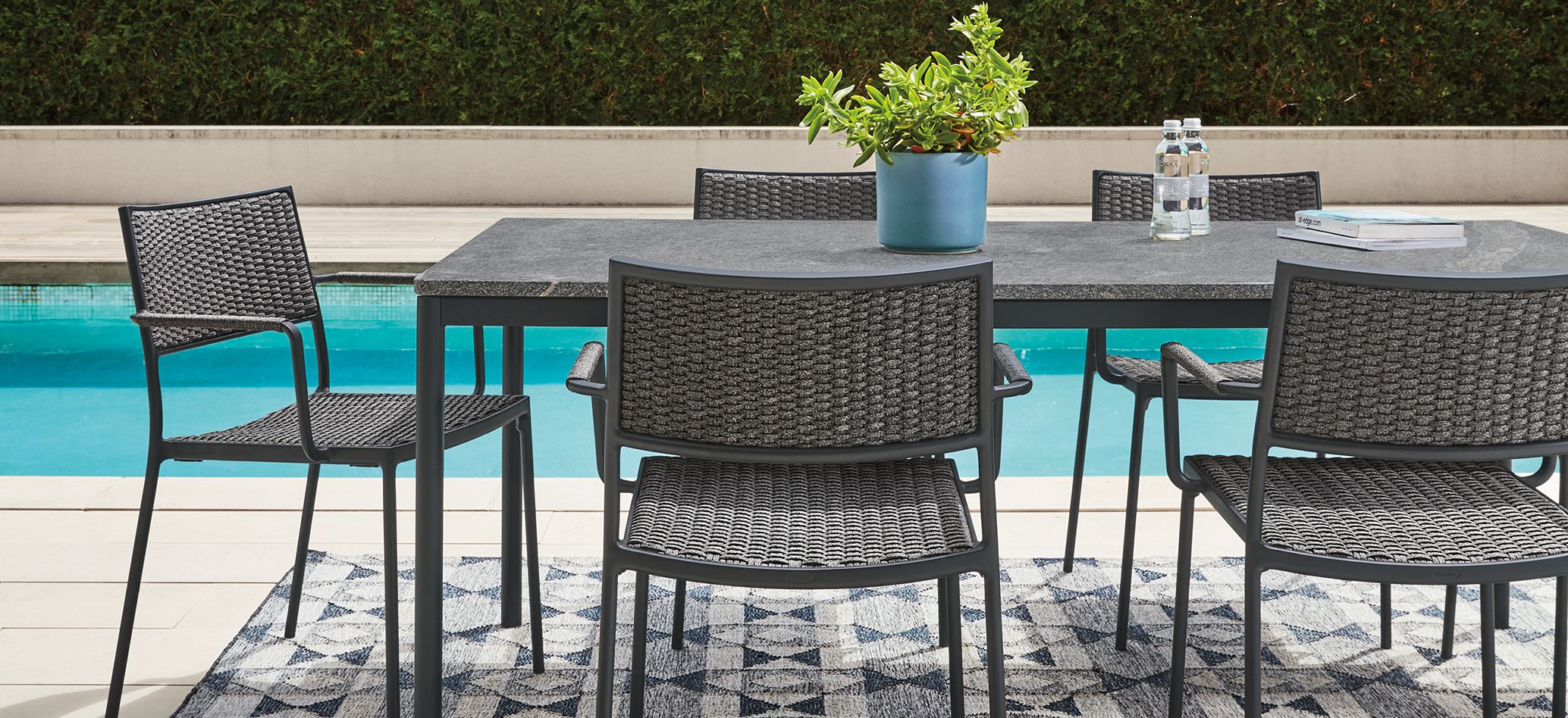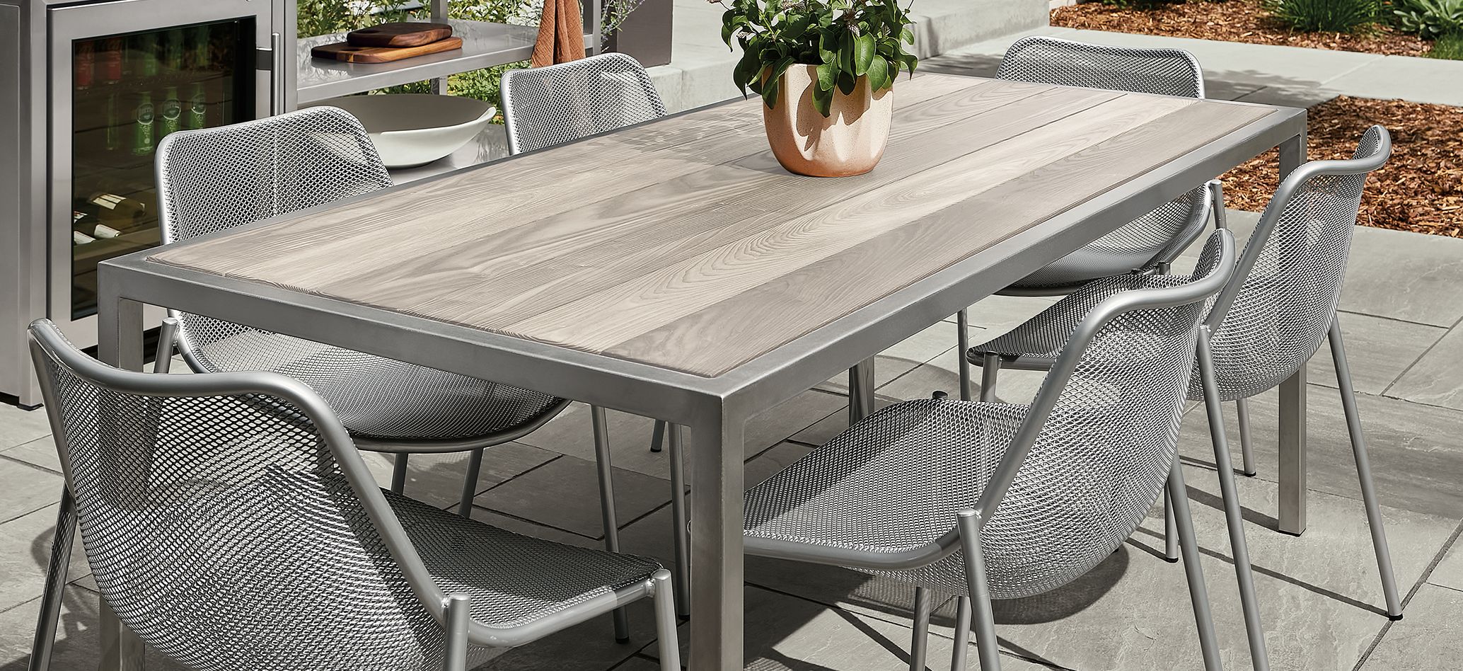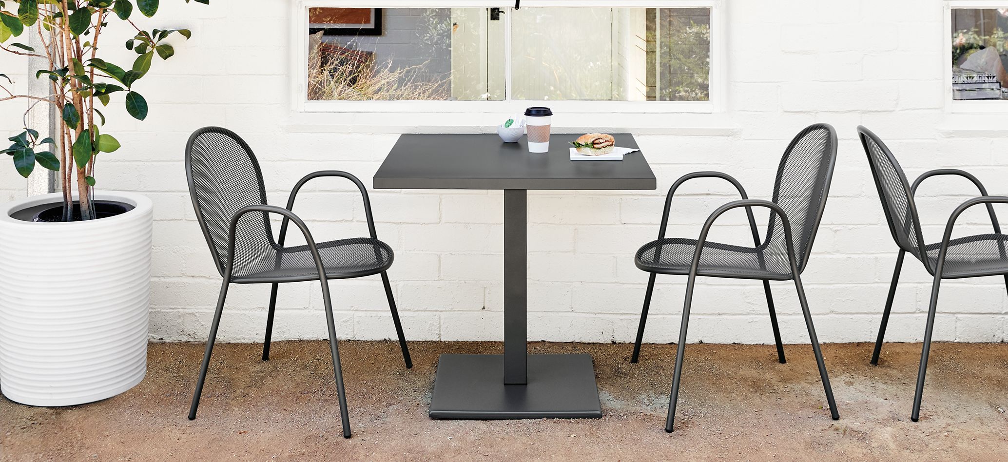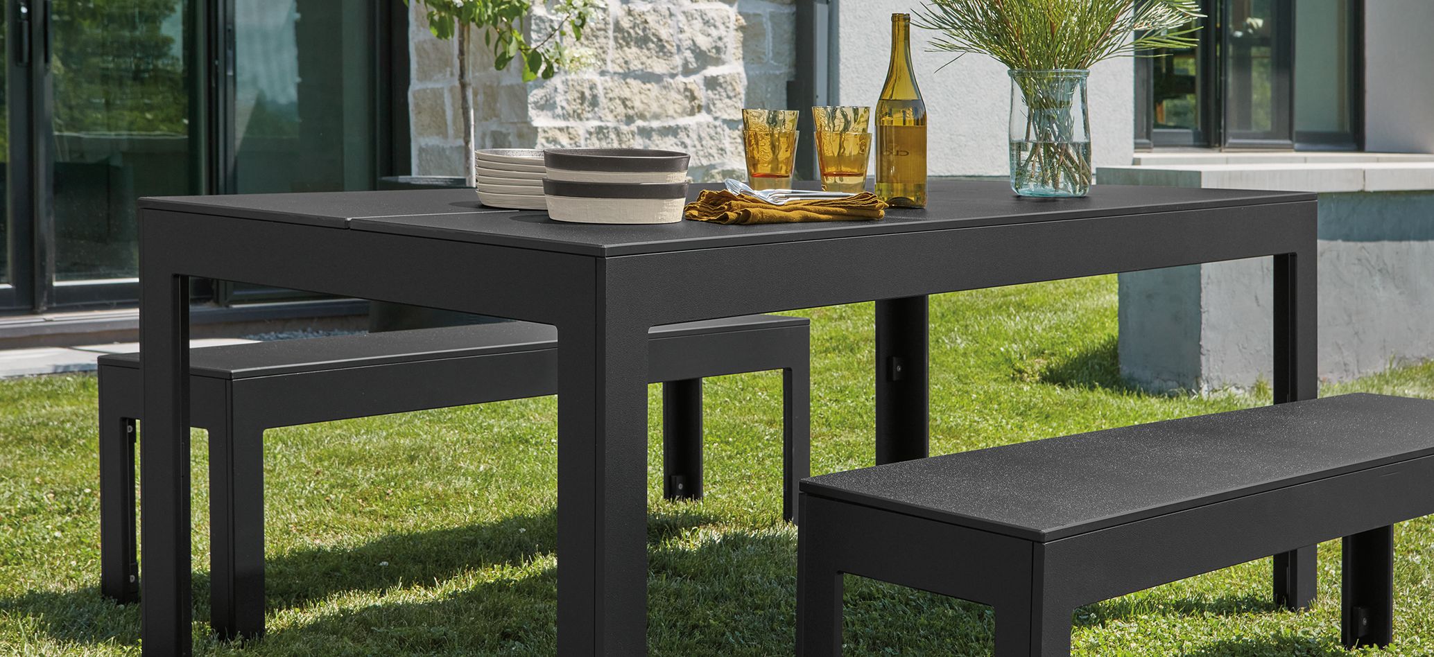 Pull together a cohesive look with outdoor-quality steel in a monochromatic palette.