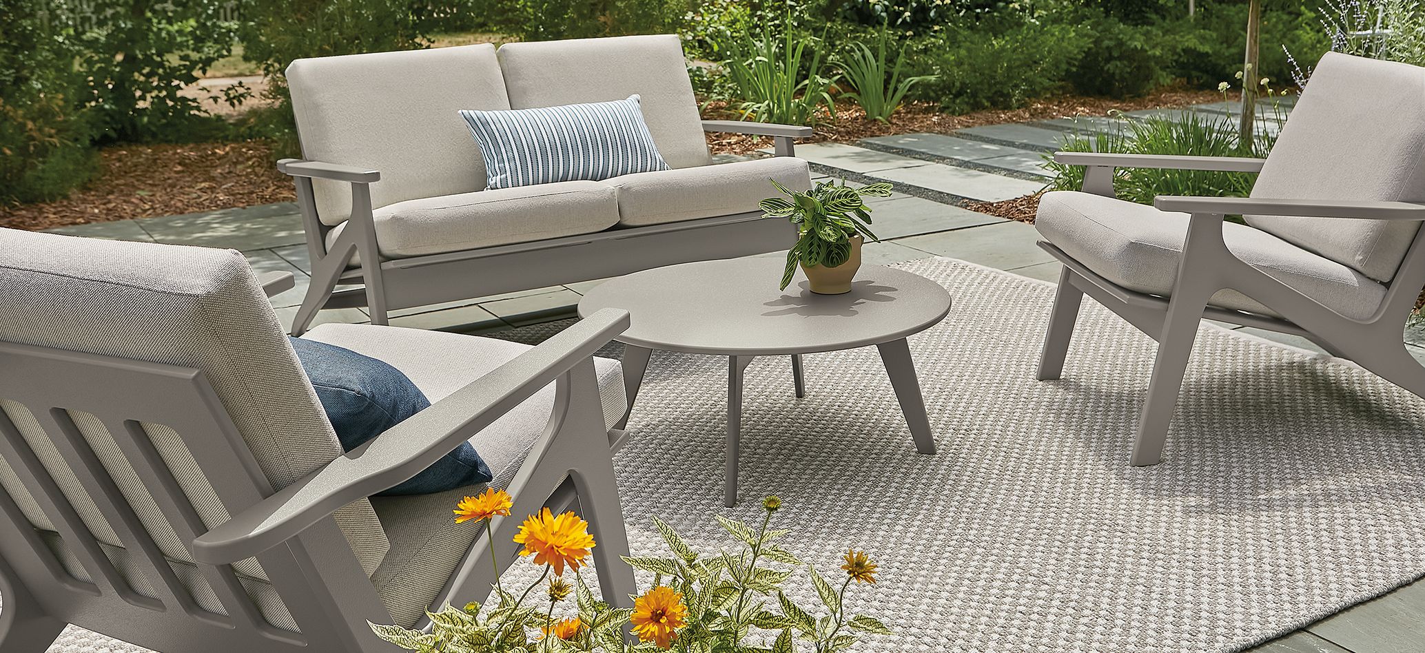 Create a gathering space with an accent table or fire table and versatile swivel chairs.
