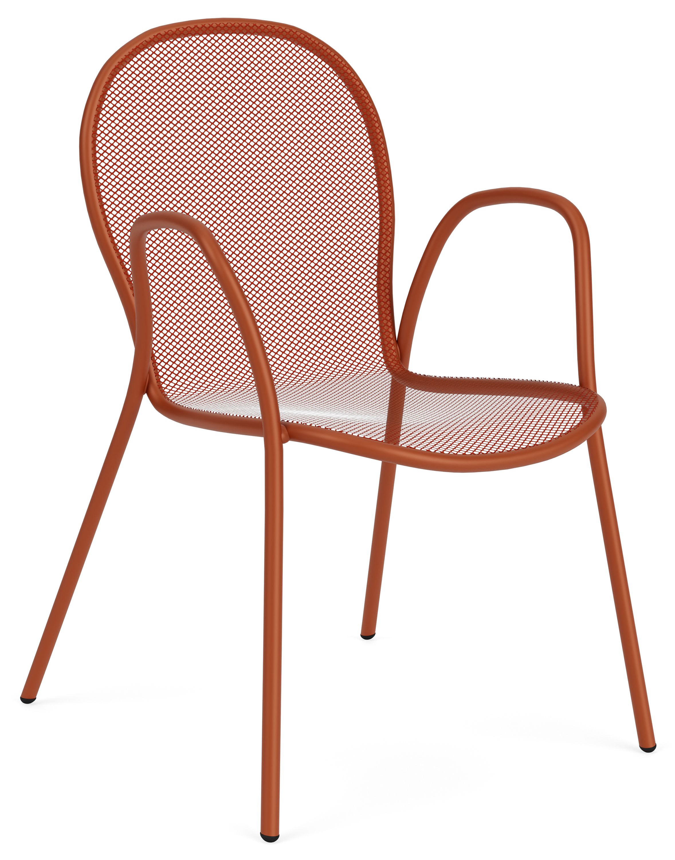 Outdoor deck with Maris round table and two Rio chairs in Cognac.