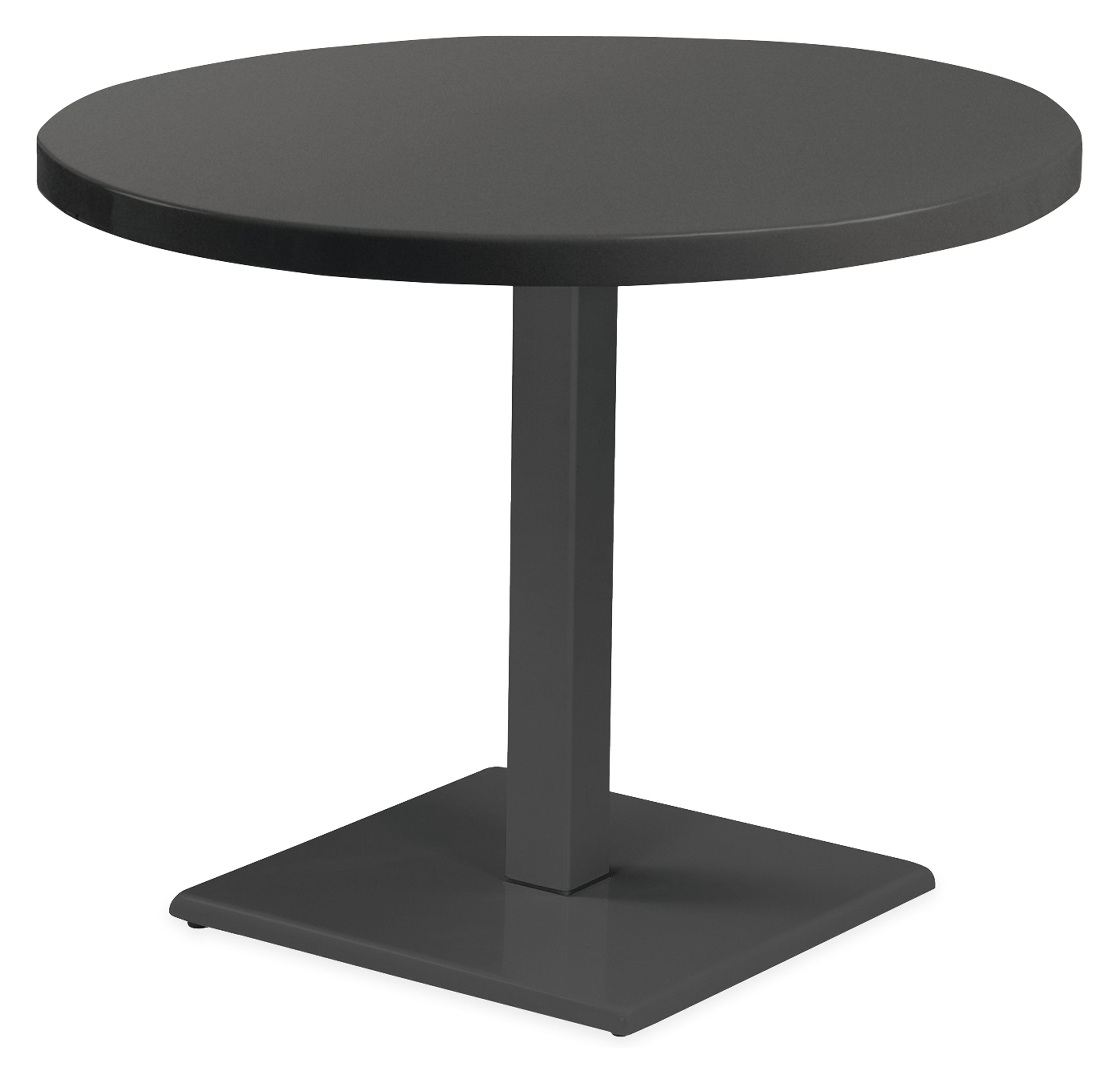 Detail of Maris outdoor round patio table and Theo chairs all in graphite.