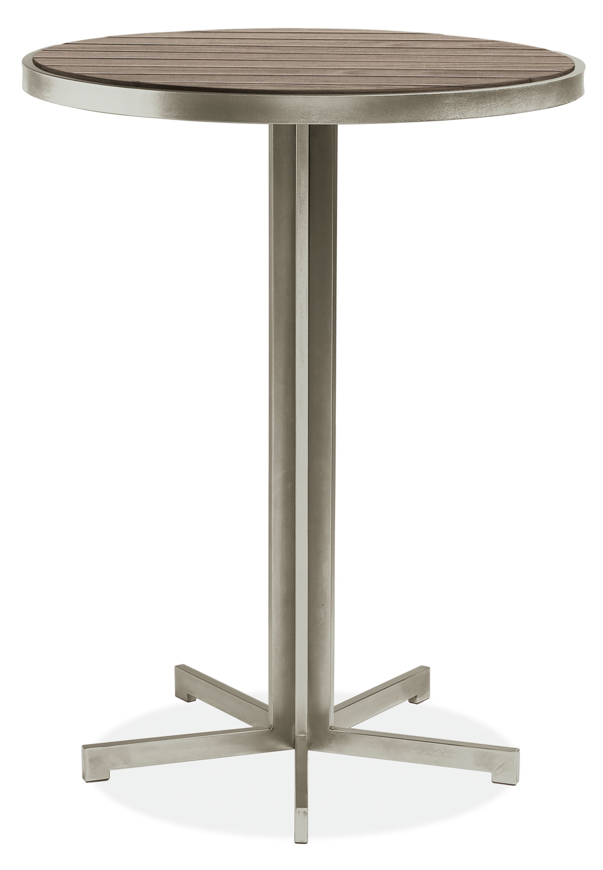 The Montego round outdoor bar table features a striking mix of durable wood and steel. With no visible screws, the solid wood boards appear to float in the modern frame. We source wood for Montego in two ways: reclaimed from fallen urban trees and harvested from sustainably managed U.S. forests, giving Montego a special origin story.