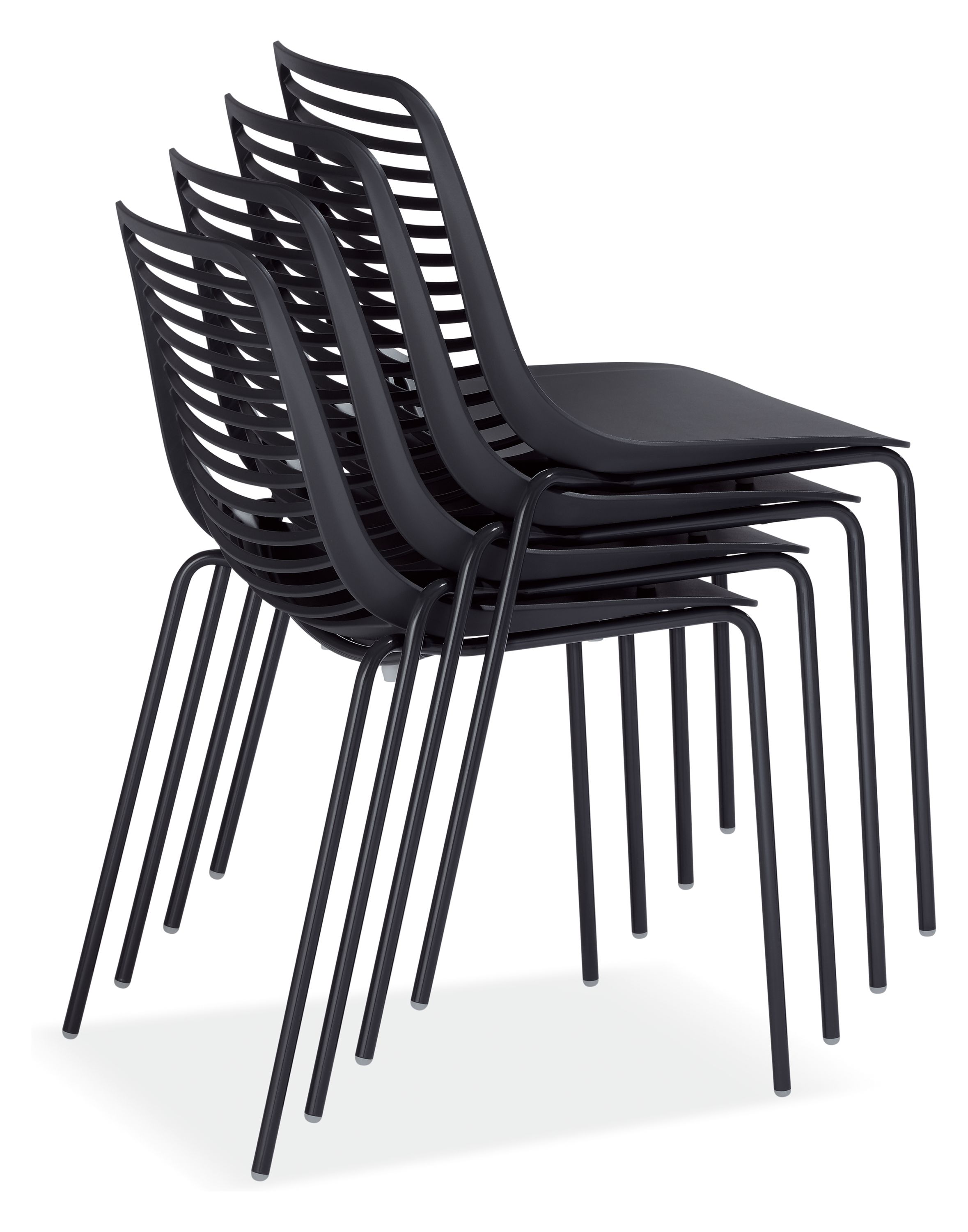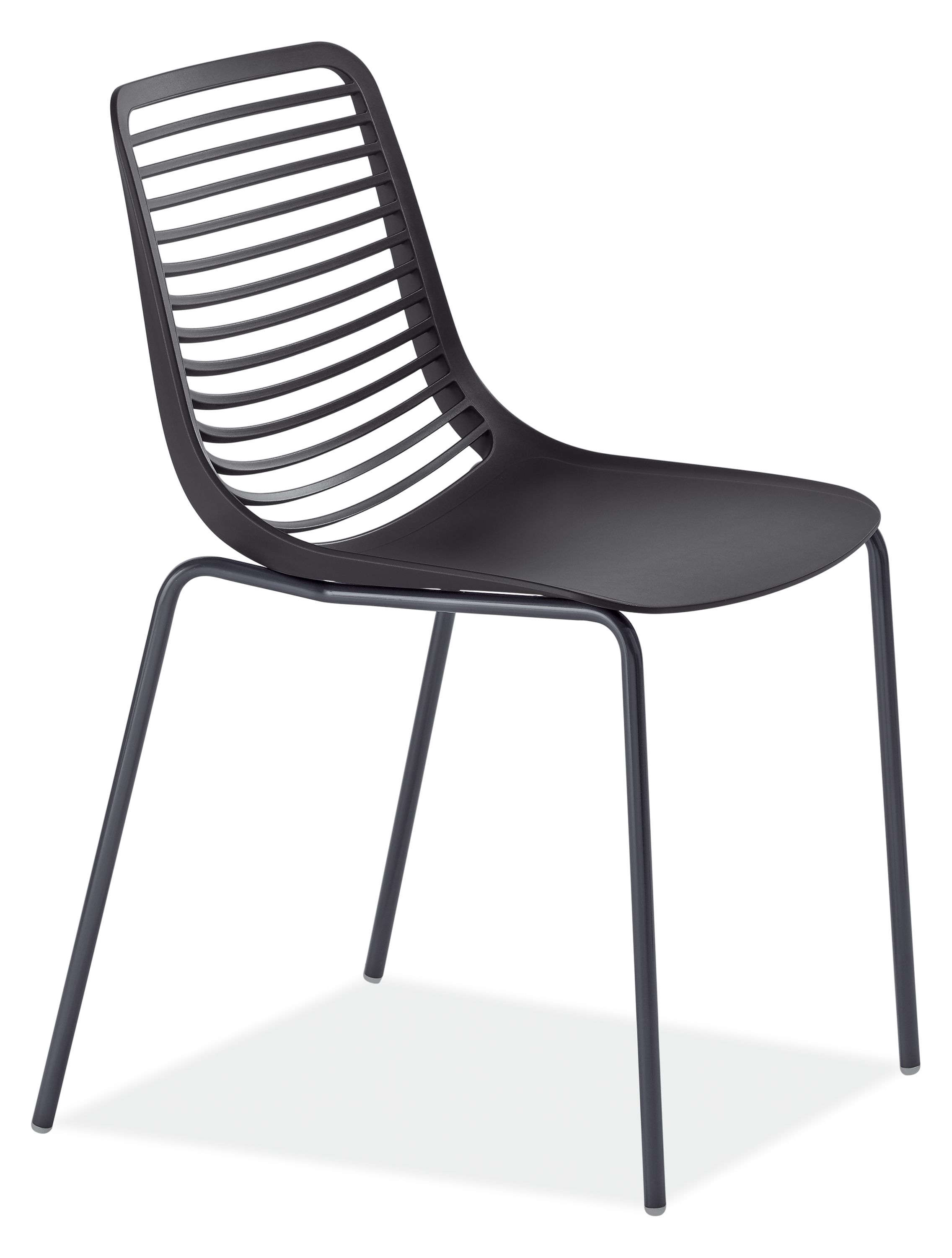 Our modern Mini outdoor dining chair features distinctive style in a contoured silhouette for added comfort. Choose your favorite color, base and back style to coordinate with your outdoor space. This durable chair has a sleek design for stackable storage and is exclusive to Room & Board.