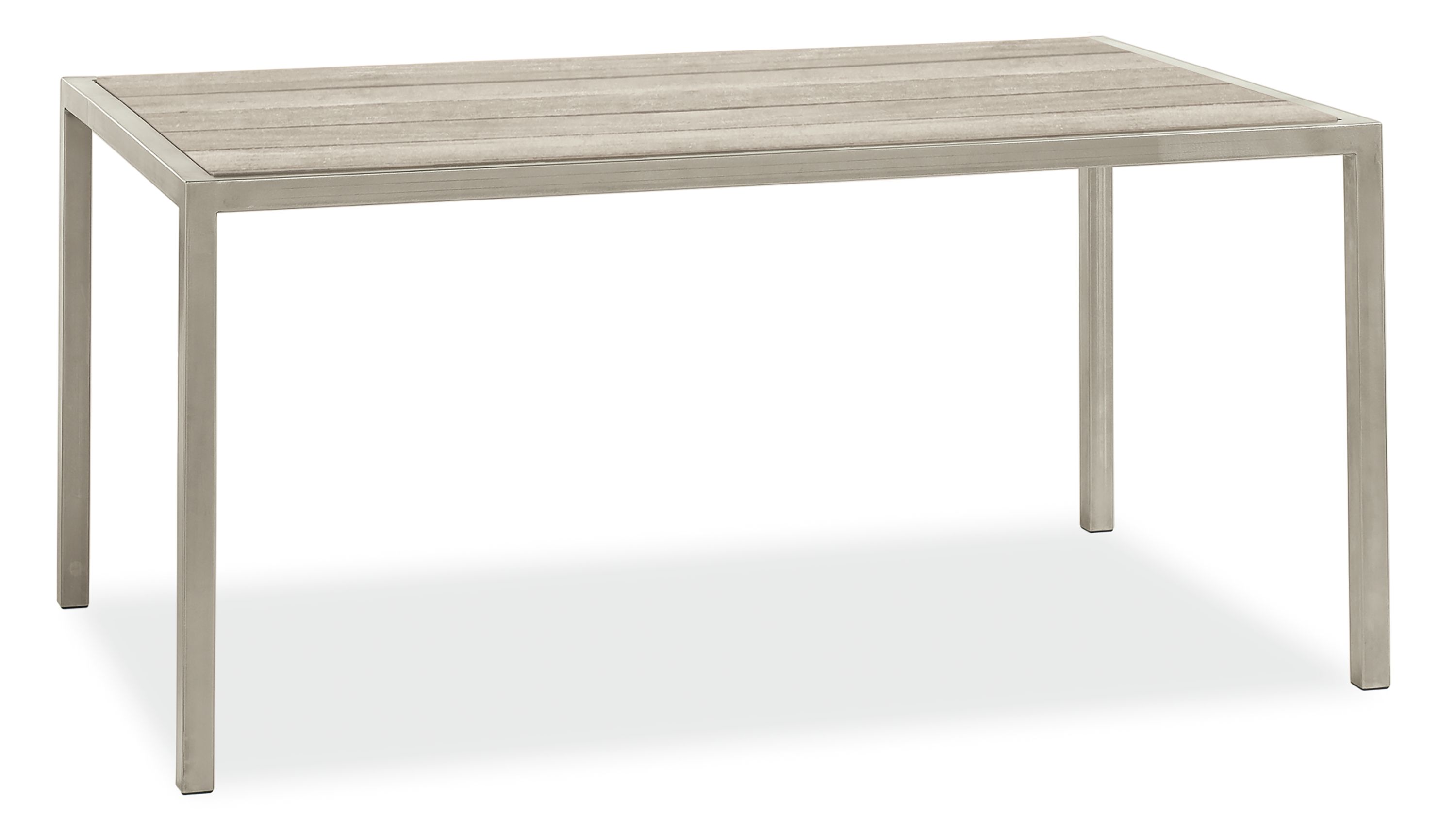 The Montego outdoor dining table features a striking mix of durable wood and steel. With no visible screws, the solid wood boards appear to float in the modern frame. We source wood for Montego in two ways: reclaimed from fallen urban trees and harvested from sustainably managed U.S. forests, giving Montego a special origin story.