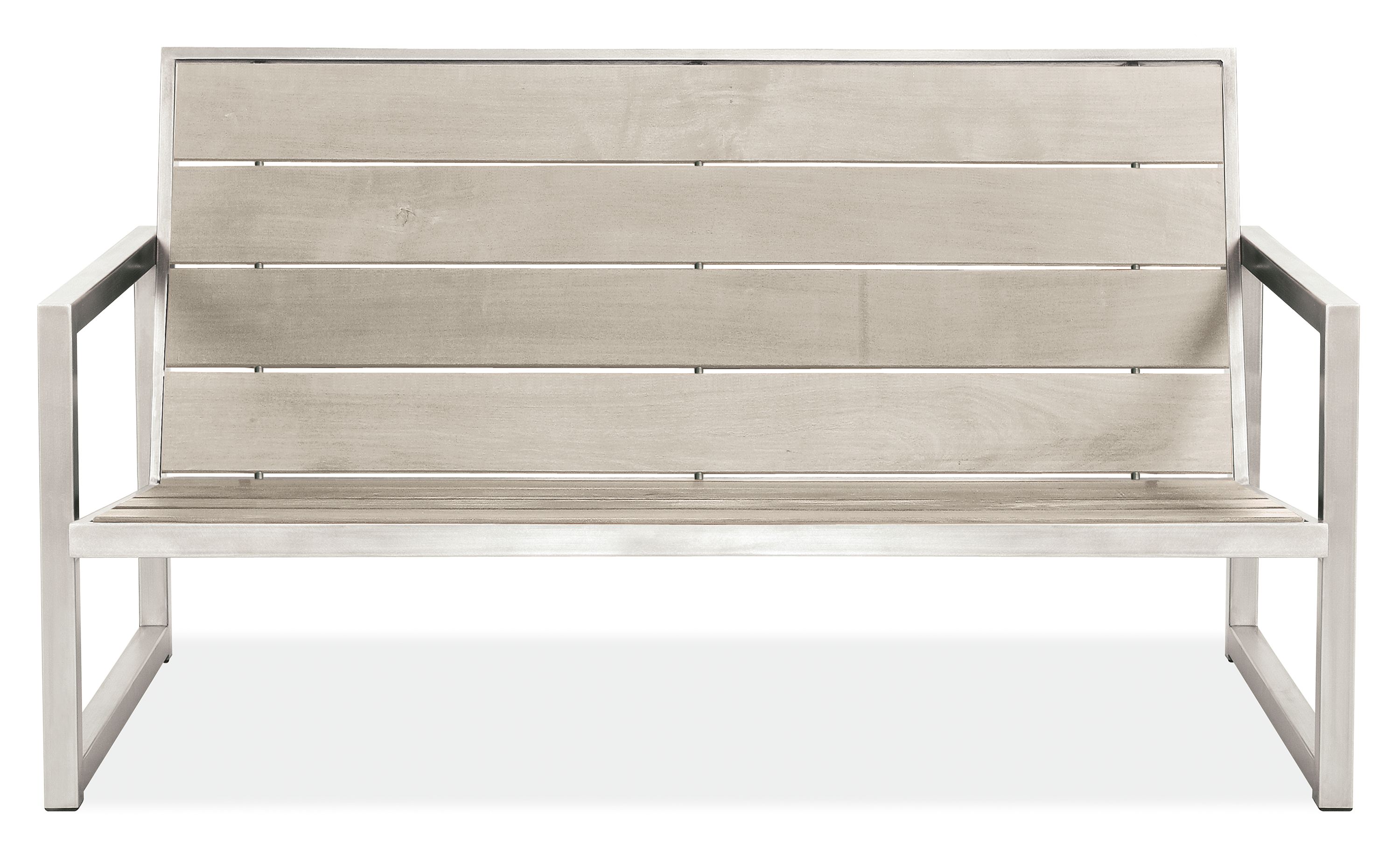 The Montego outdoor sofa features a striking mix of durable wood and steel. With no visible screws, the solid wood boards appear to float in the modern frame. We source wood for Montego in two ways: reclaimed from fallen urban trees and harvested from sustainably managed U.S. forests, giving Montego a special origin story.