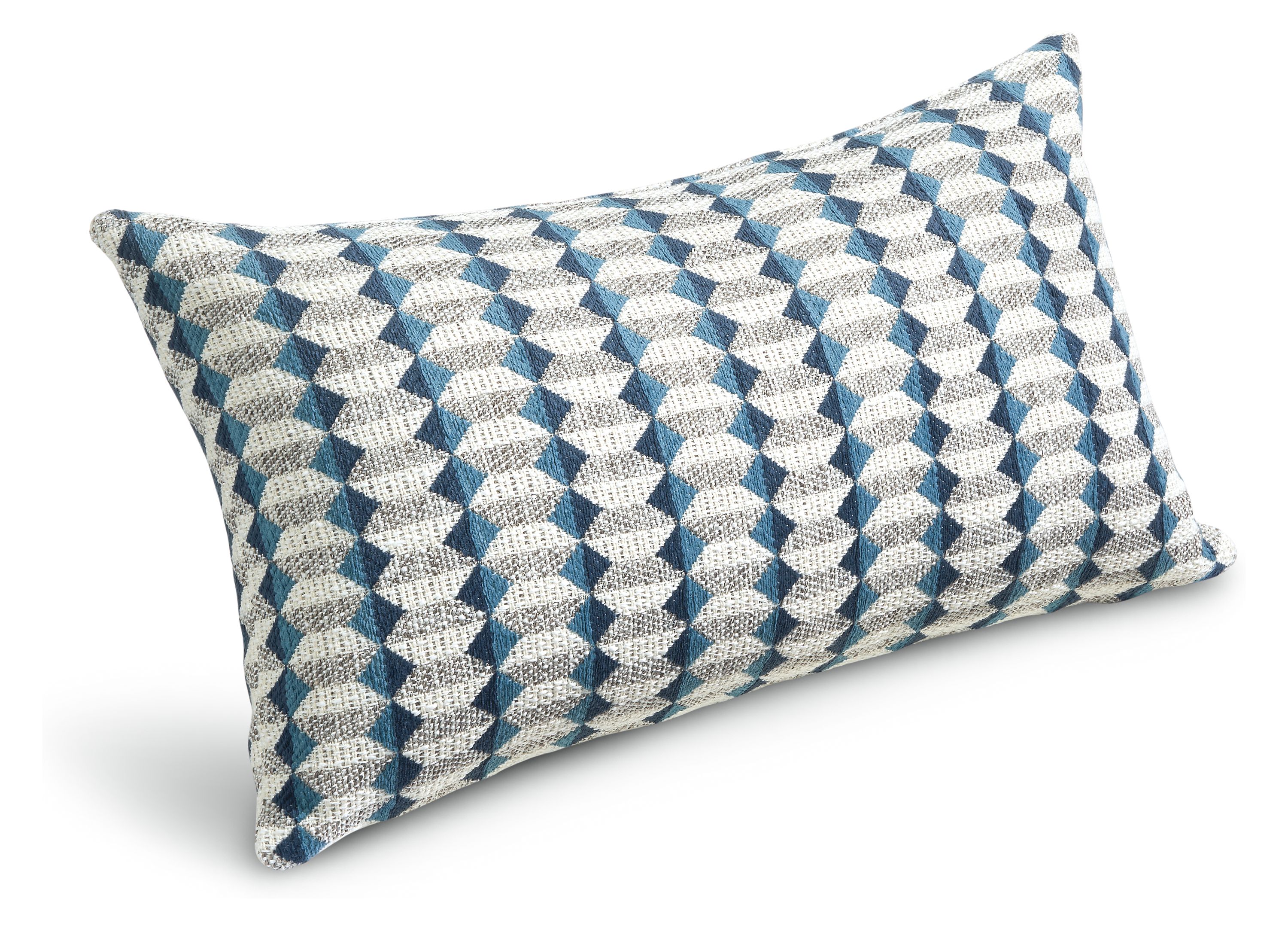 An intricate geometric design decorates this pillow, featuring diamonds and half-rhombuses with alternating colors that create an optical illusion effect. Made from durable materials and a comfortable fill, this modern outdoor throw pillow makes an fetching addition to your sofa or chair.