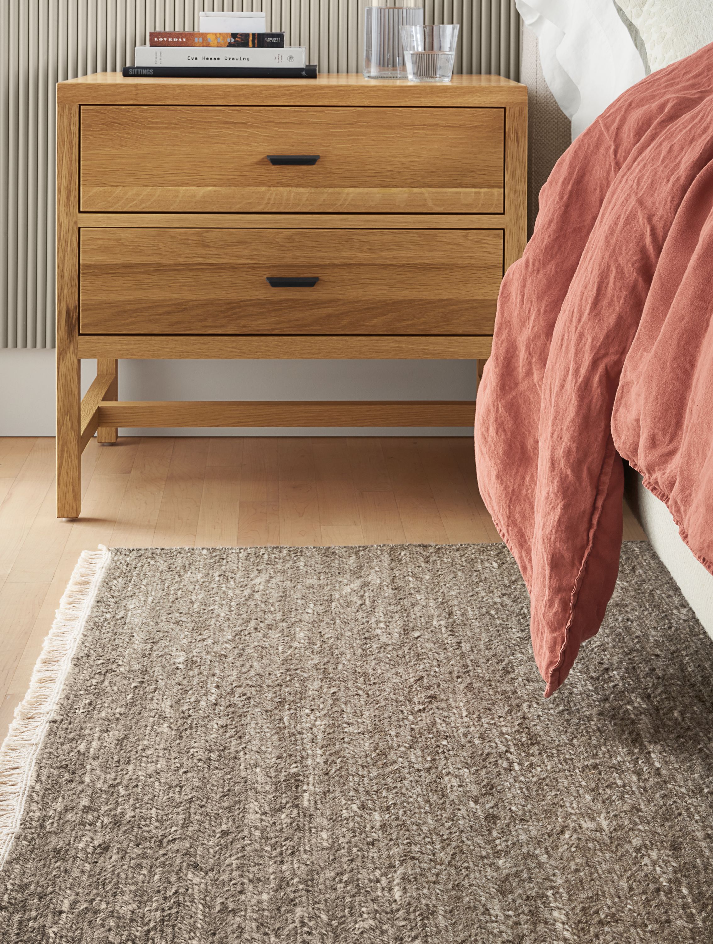 Dia’s unique texture is achieved with the soumak weaving technique that’s reminiscent of braiding and extremely durable. Handwoven in India from 100% wool, Dia adds a modern layer of color and subtle depth to your space.