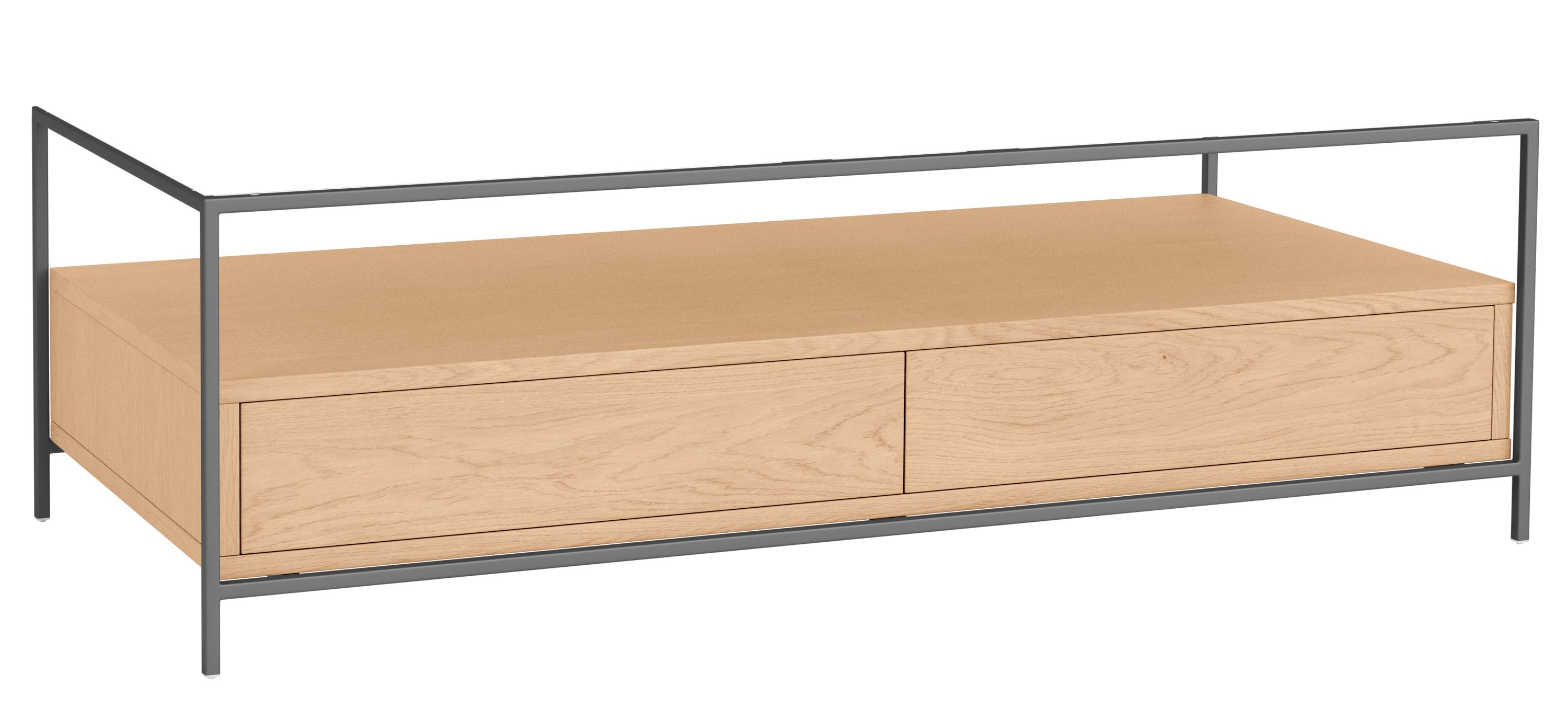 Our Williams coffee table pairs beautiful and hardworking materials with clean modern lines. The steel base houses wood drawers for extra storage within the drawers or on top of them. Elegant and durable top options complement the steel and wood for a supremely modern aesthetic.