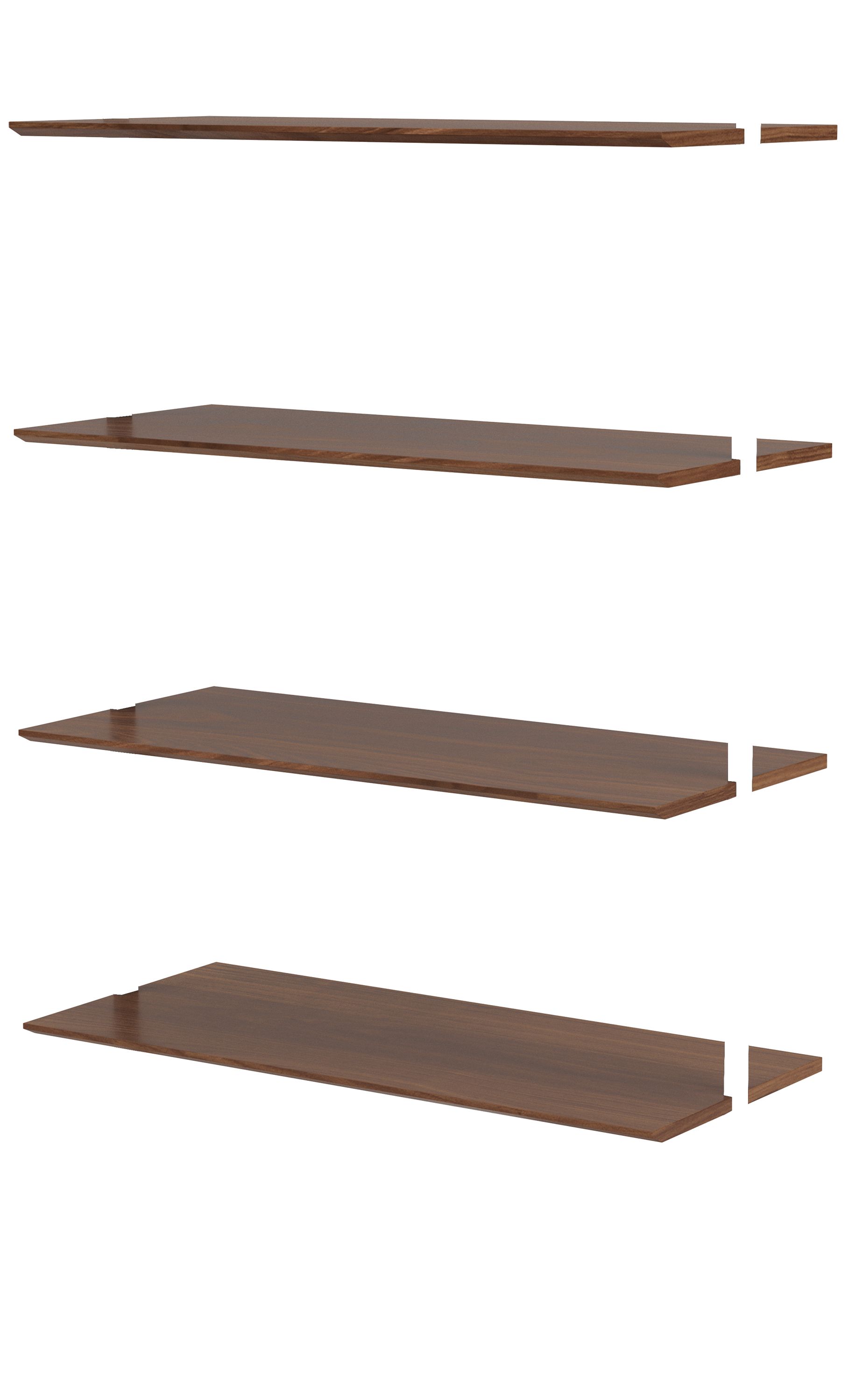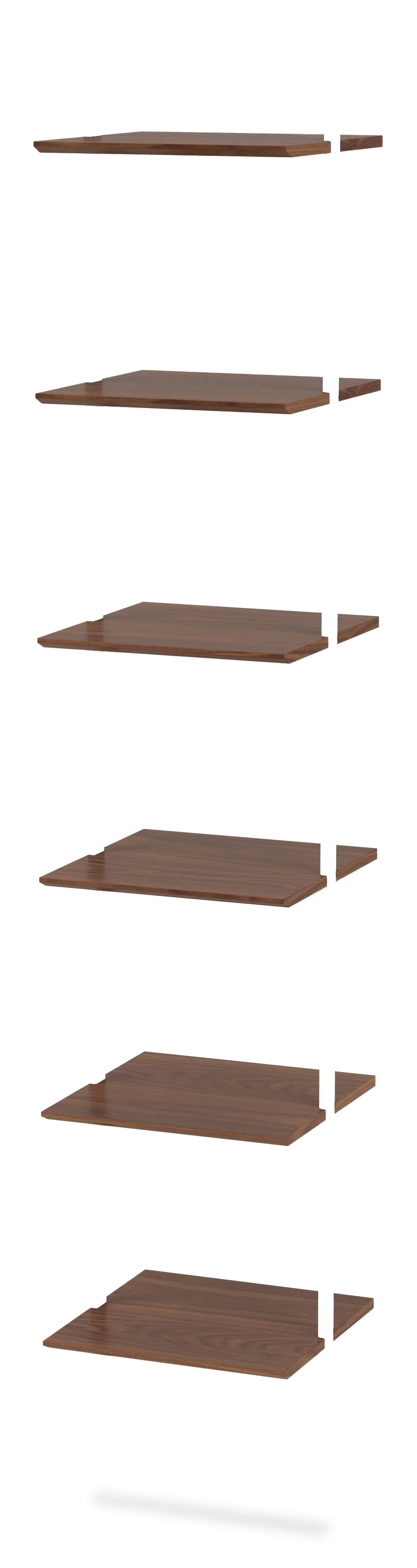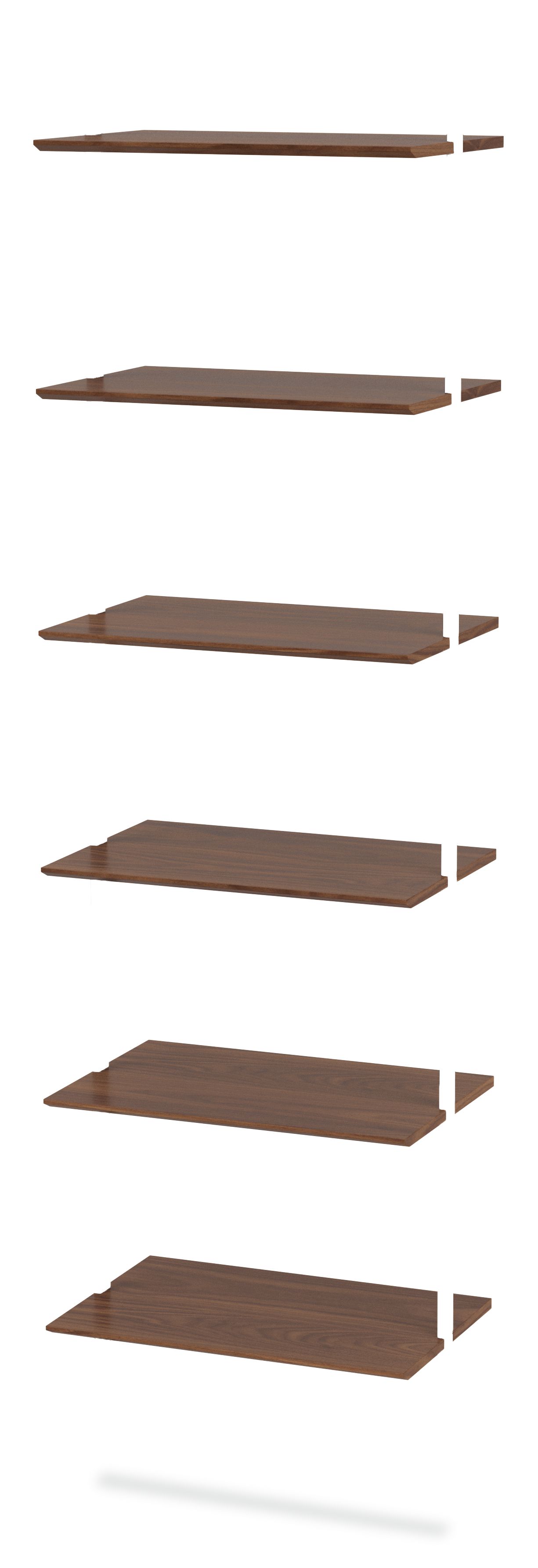- Shelves: walnutFinish: lacquerFeatures: Wood veneer on engineered wood, Slightly lightens over time, Lacquer finish