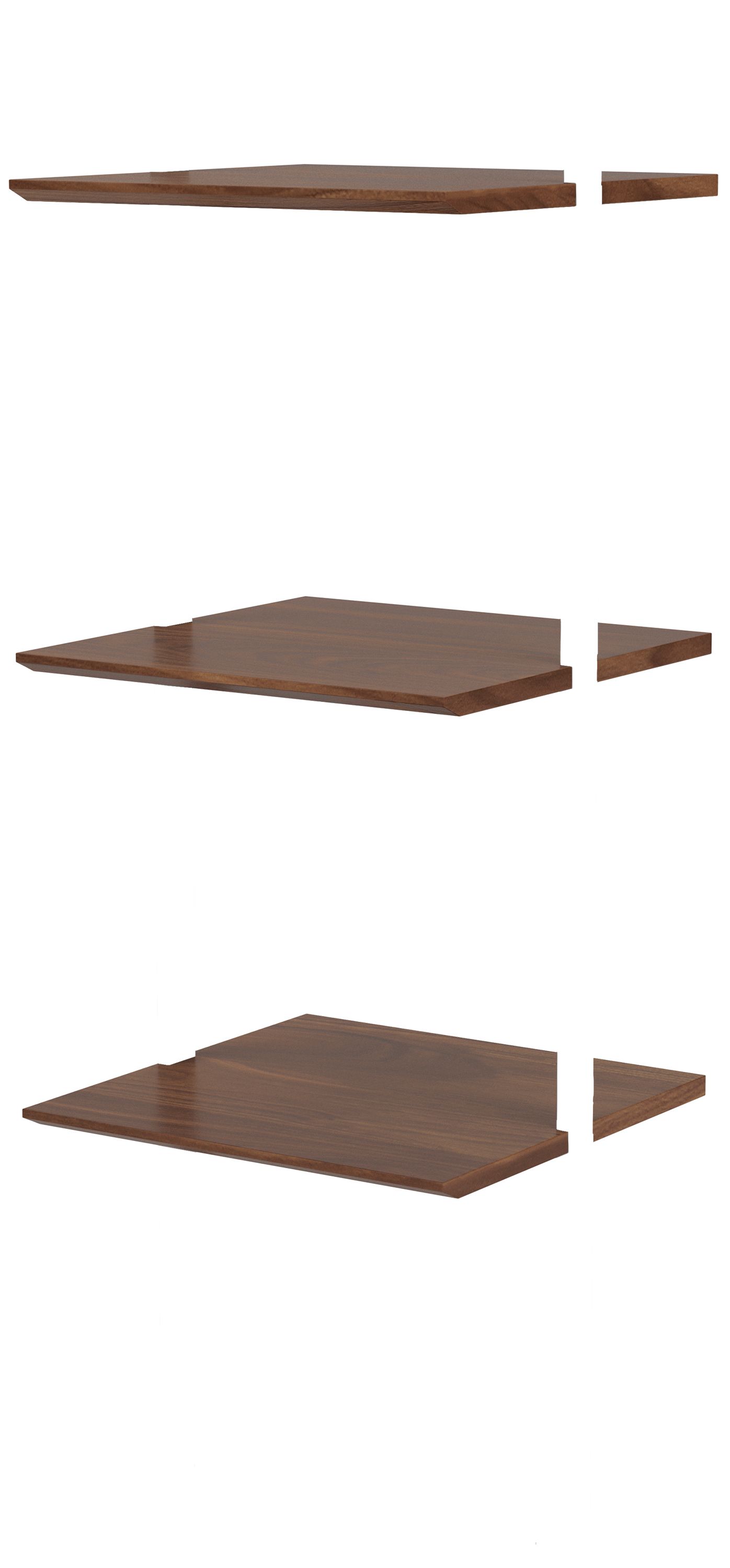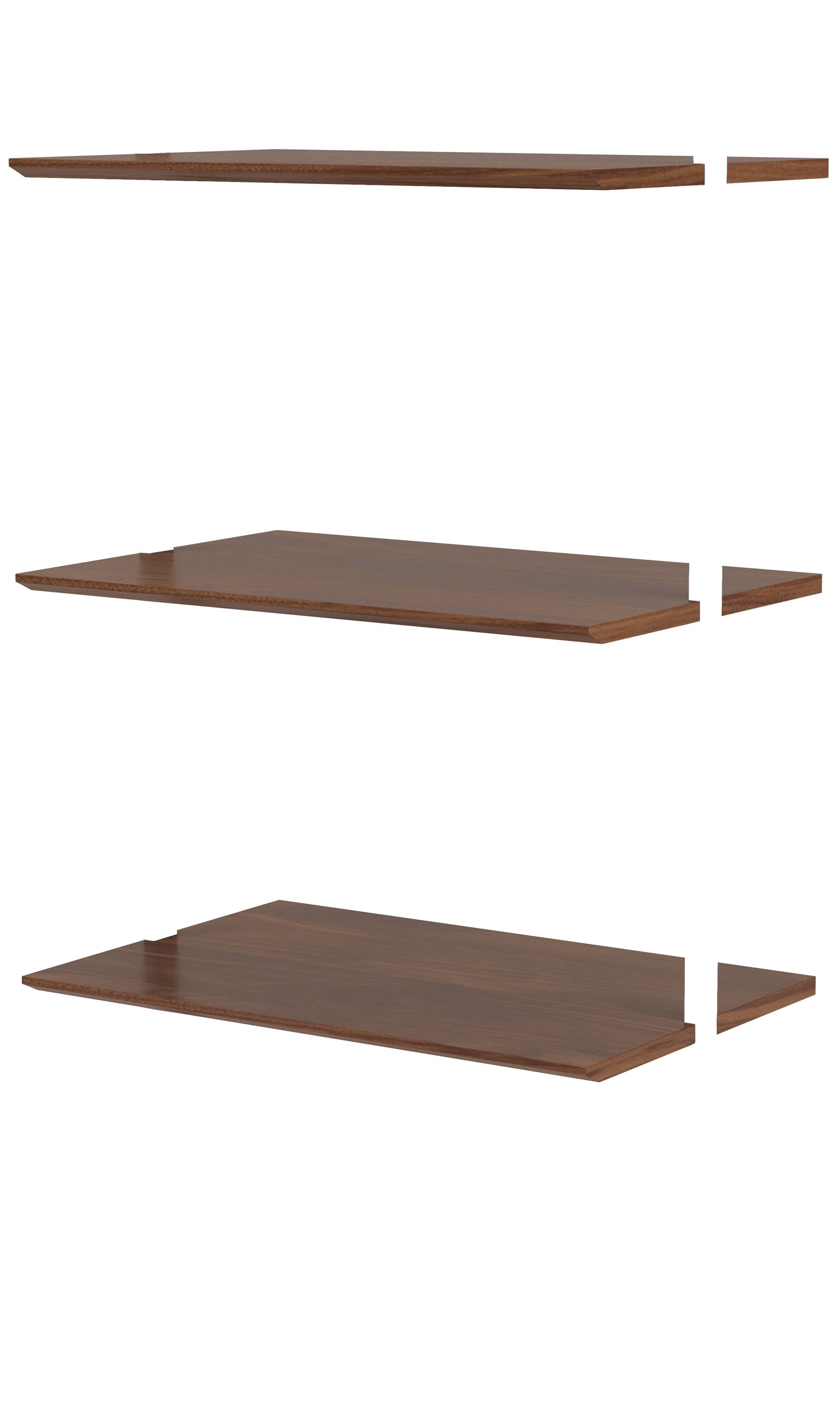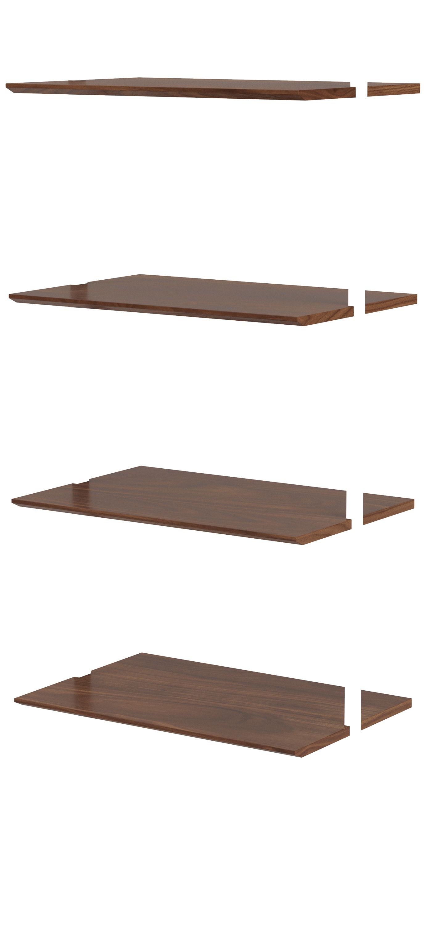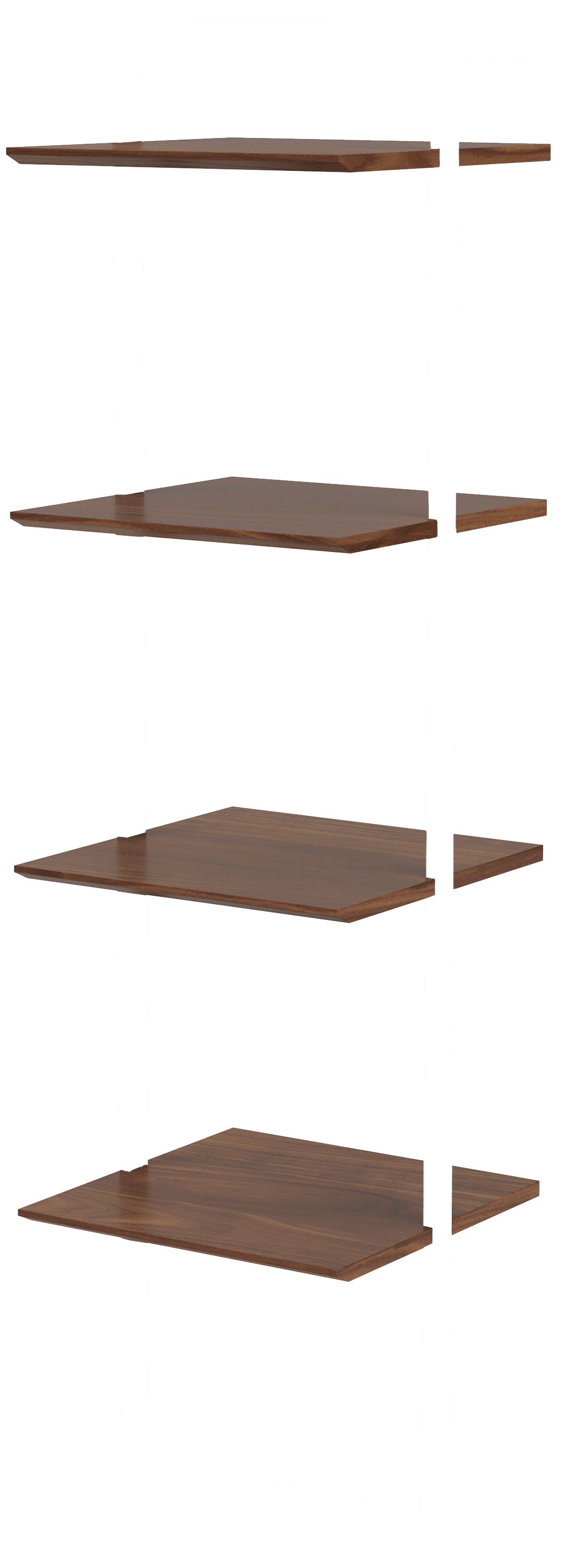 - Shelves: walnutFinish: lacquerFeatures: Wood veneer on engineered wood, Slightly lightens over time, Lacquer finish