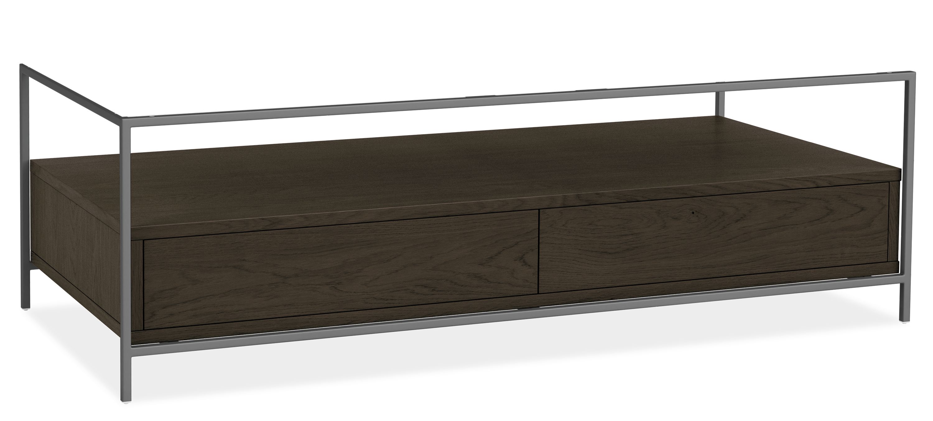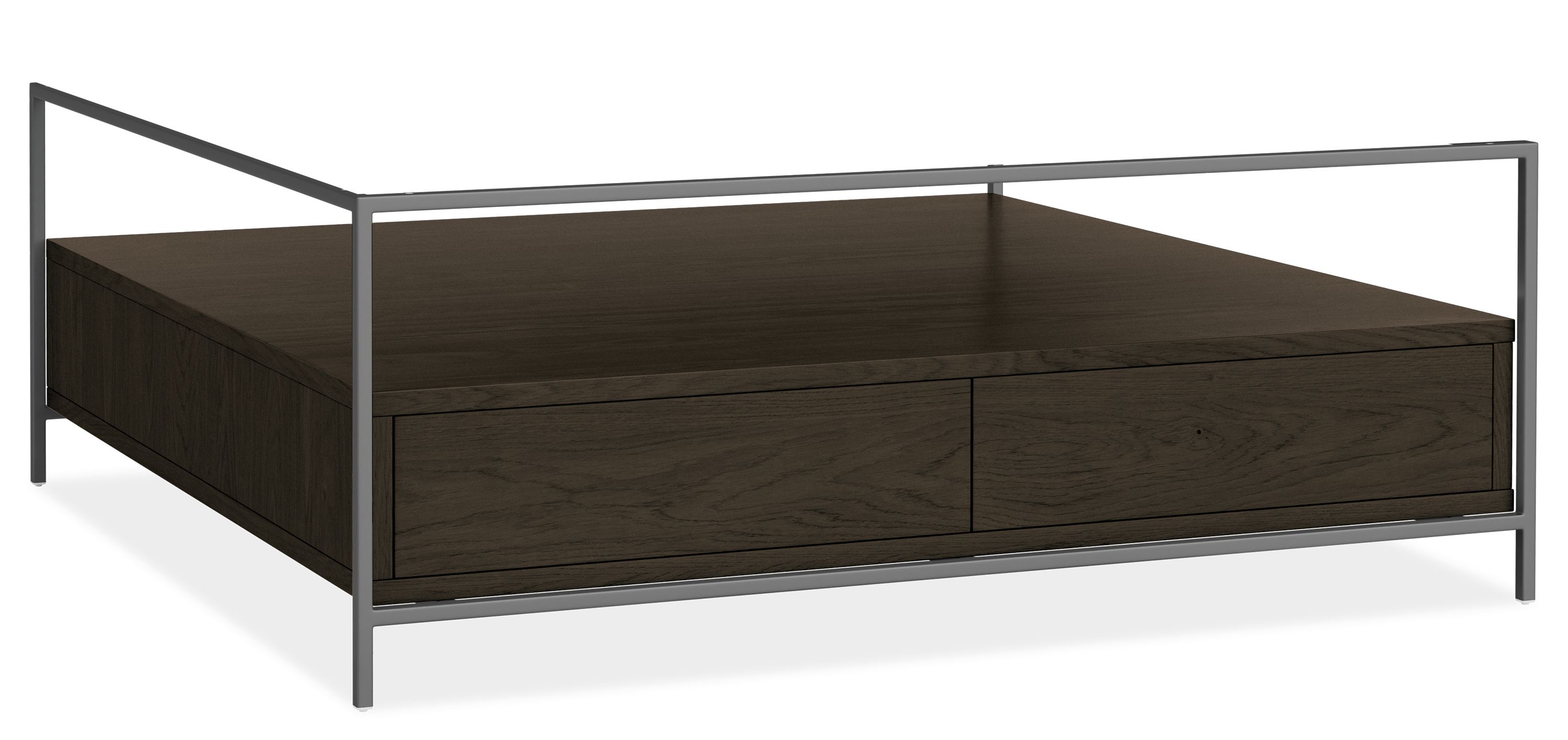 Our Williams coffee table pairs beautiful and hardworking materials with clean modern lines. The steel base houses wood drawers for extra storage within the drawers or on top of them. Elegant and durable top options complement the steel and wood for a supremely modern aesthetic.