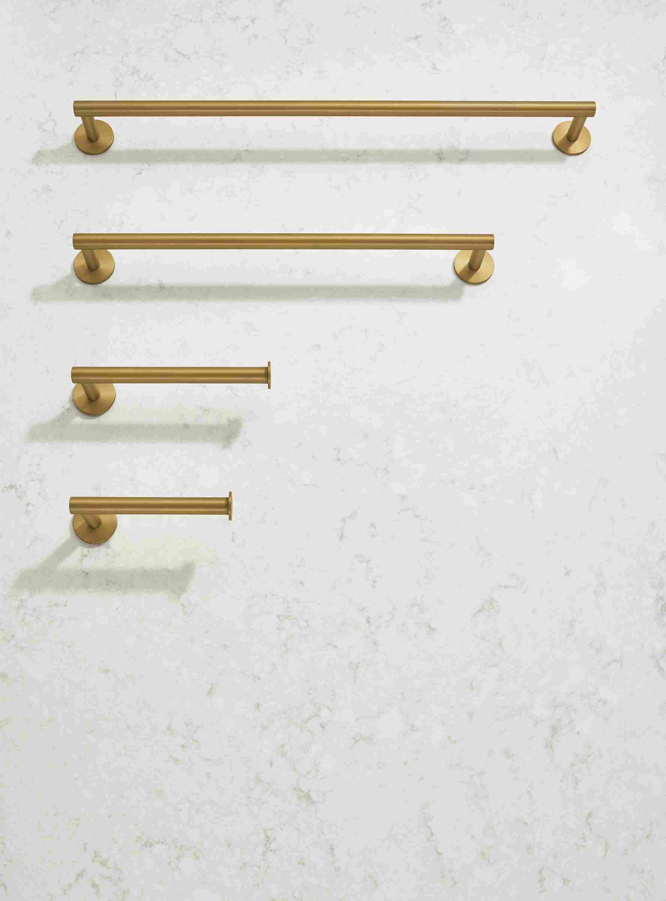 Wisconsin metalworkers craft our Hoff bath collection one piece at a time. The towel racks and toilet paper holder feature hidden screws for a sleek, seamless look. Mount them in any orientation you prefer for modern functionality in any space.
