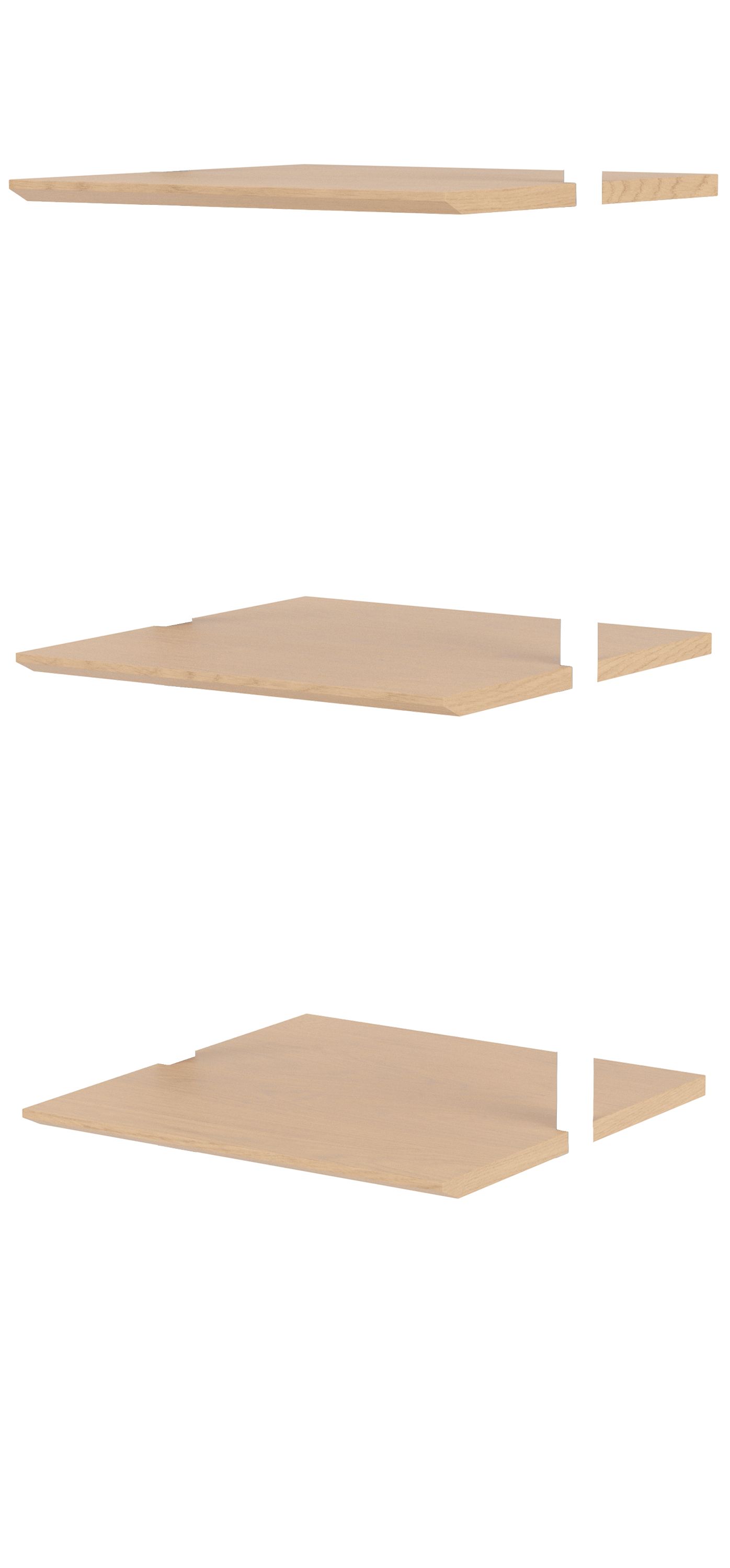 - Shelves: oakColor: saltFinish: lacquerFeatures: Wood veneer on engineered wood, Minimal color change over time, Lacquer finish
