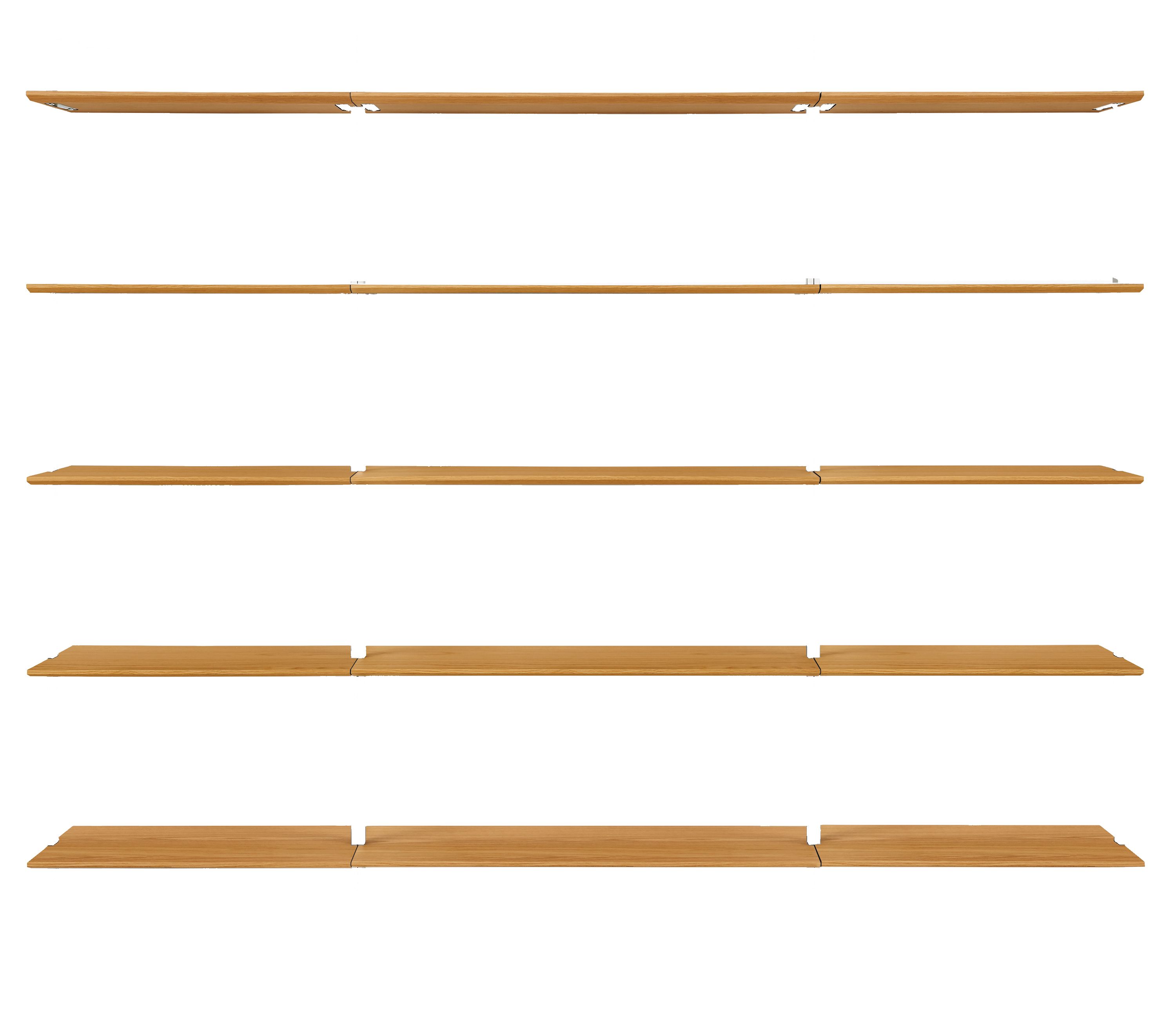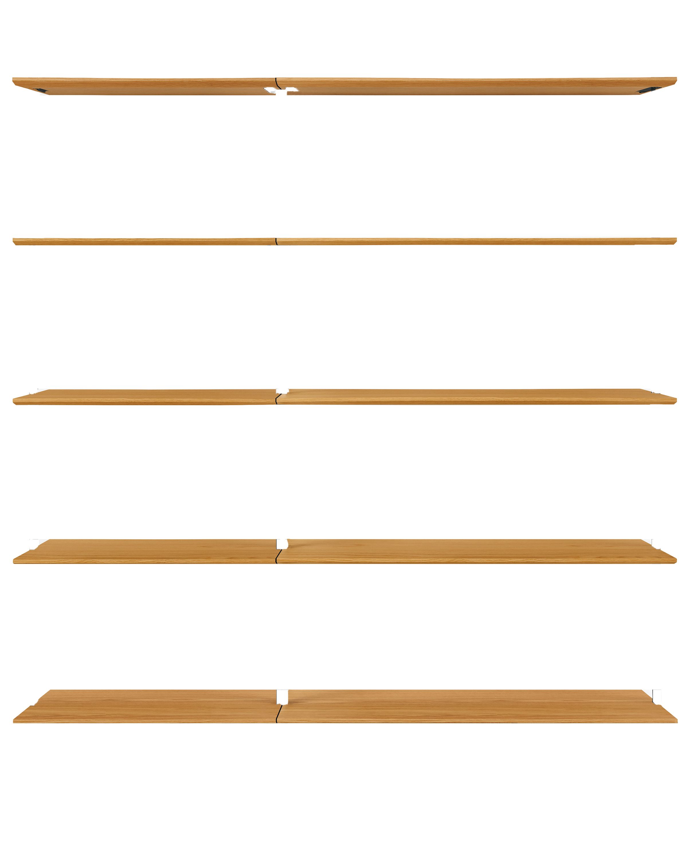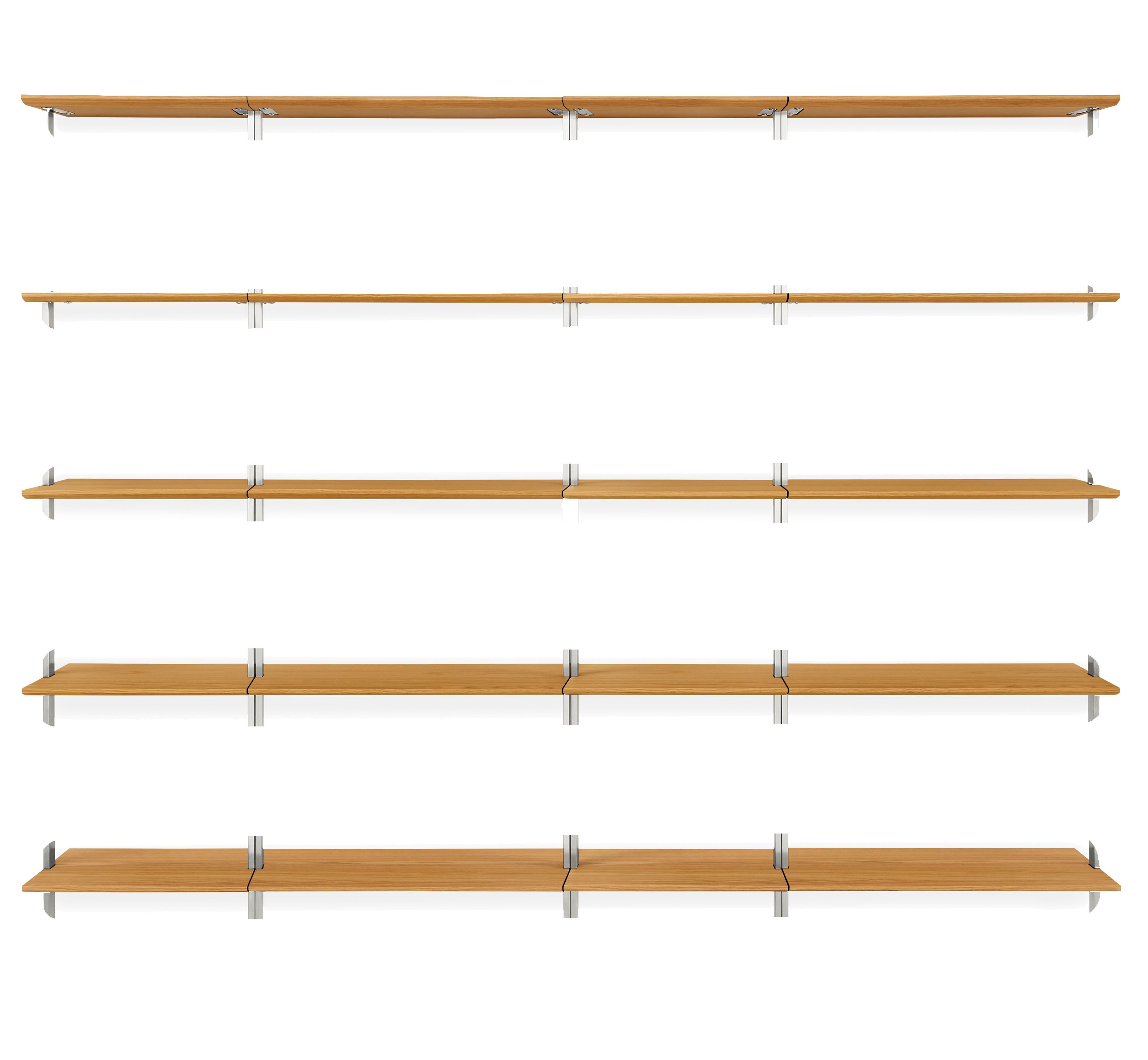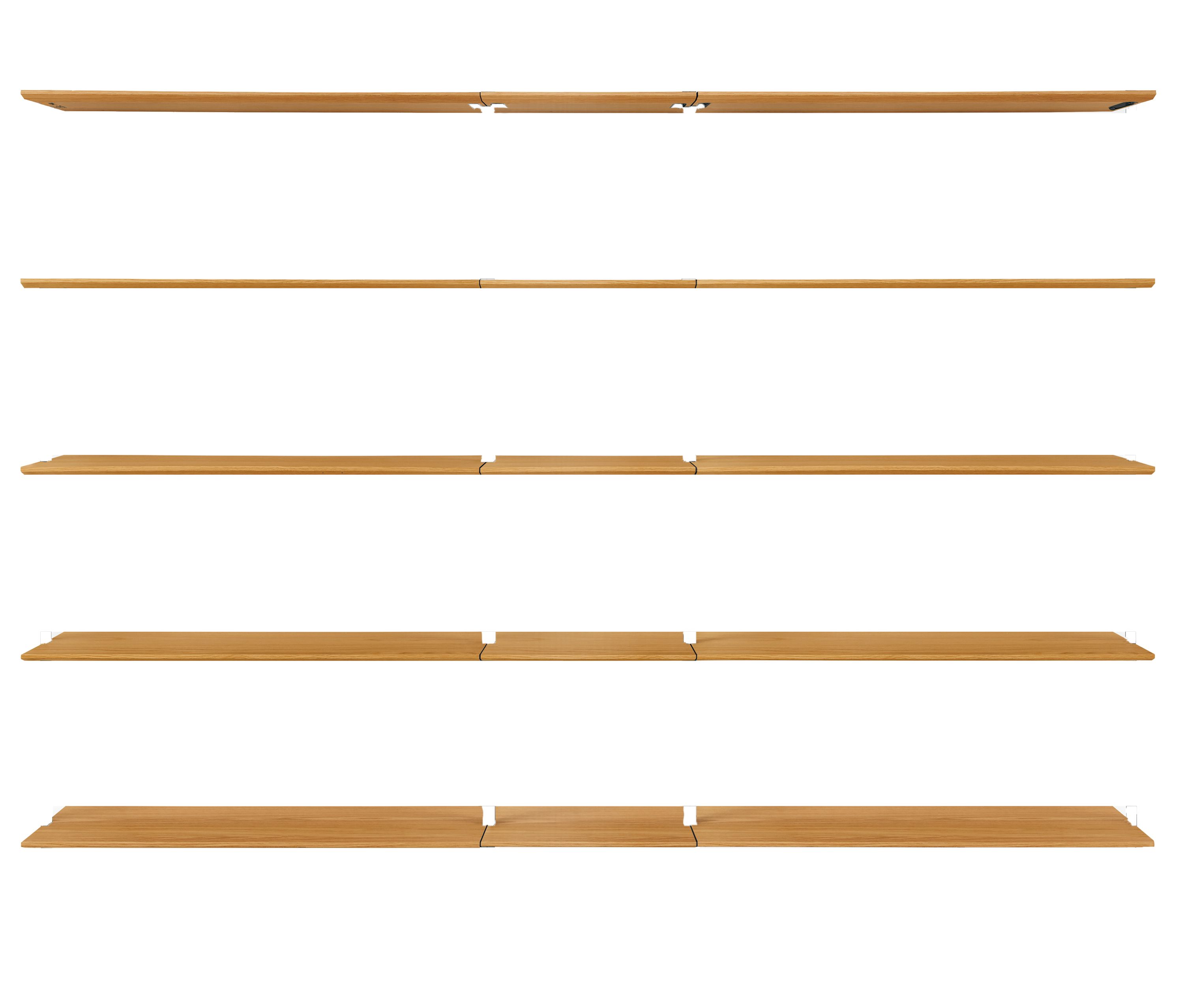 - Shelves: fifteen fixed wood