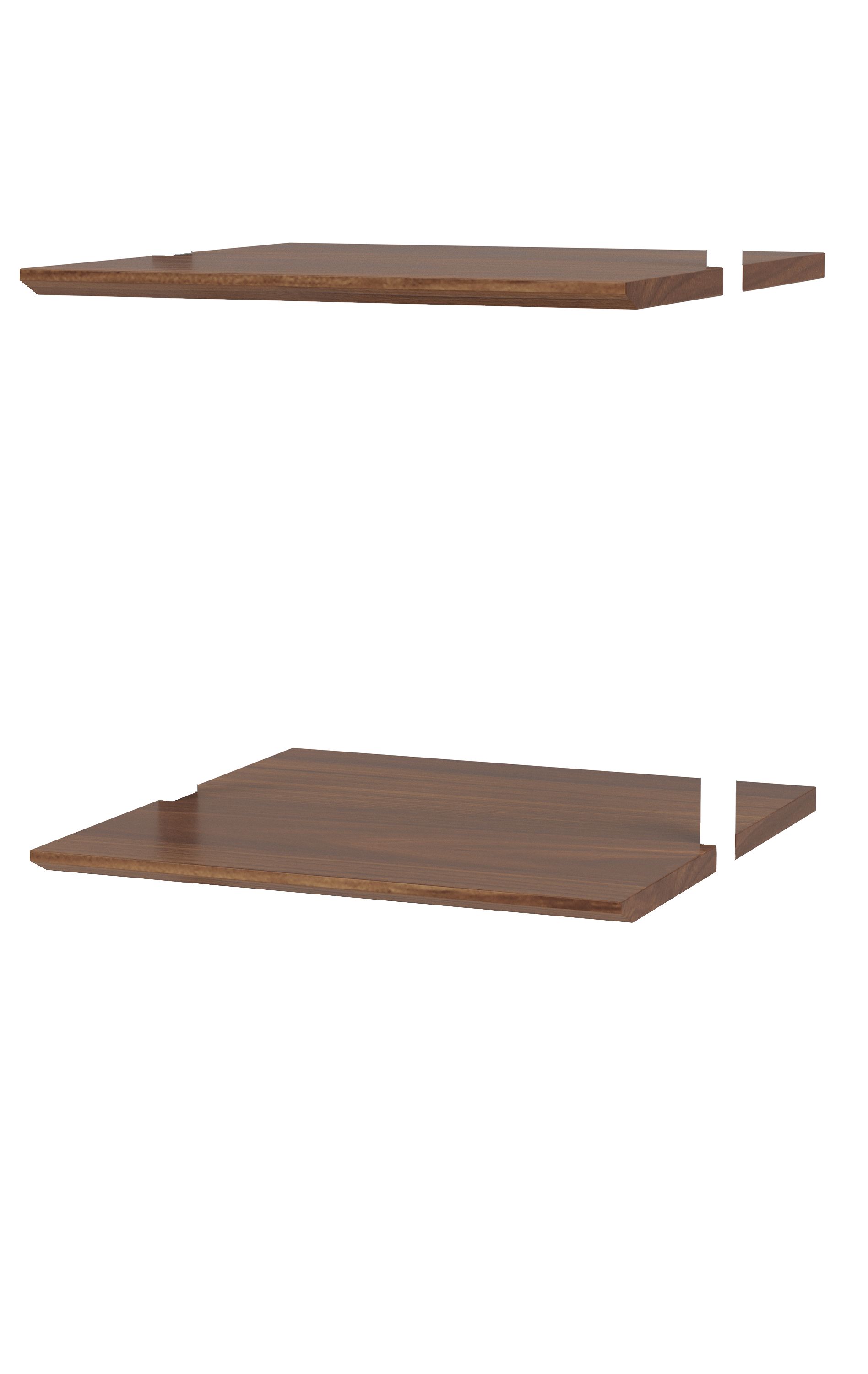- Shelves: walnutFinish: lacquerFeatures: Wood veneer on engineered wood, Slightly lightens over time, Lacquer finish
