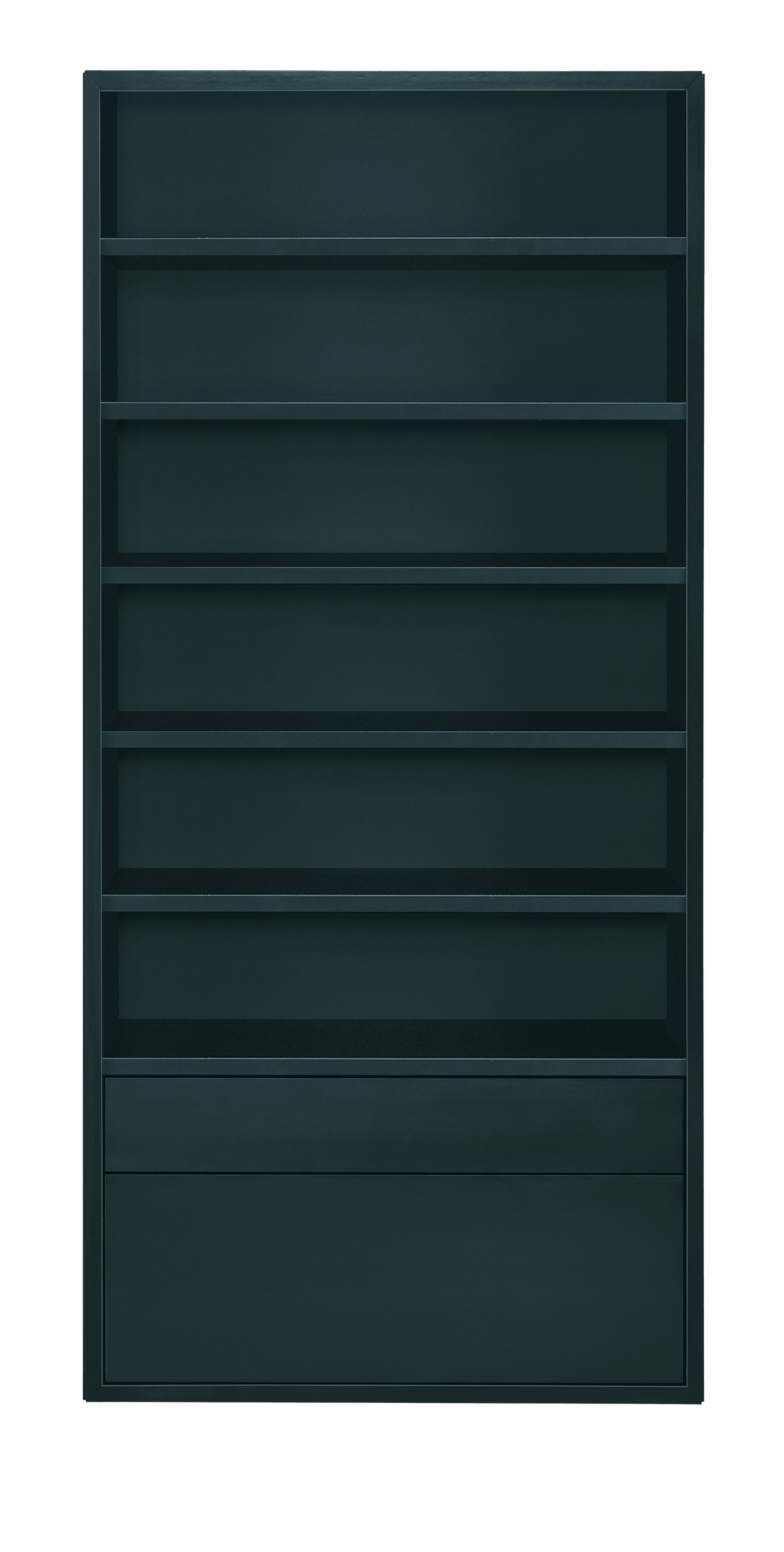 - Shelves: six adjustable wood; one fixed wood