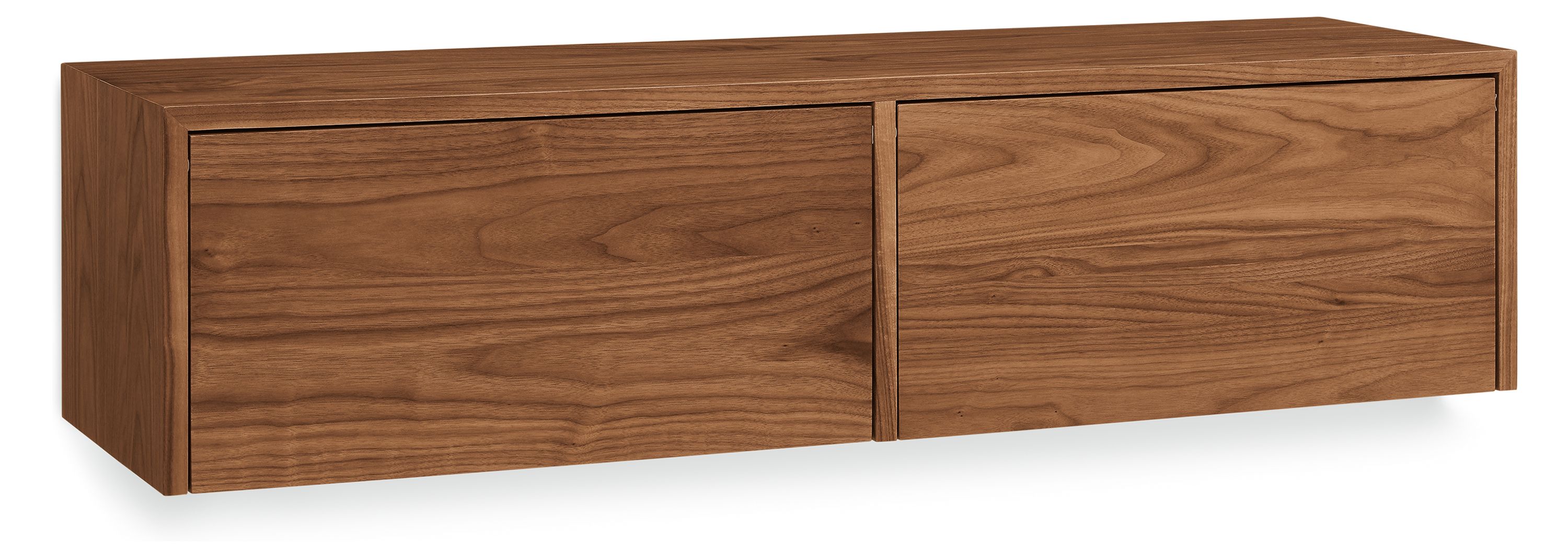 Our Hover wall-mounted cabinet is a minimalist modern storage solution. Retractable doors with routed door pulls make for elegant opening and closing movements. With its cord openings, Hover works well as a media cabinet, but also easily succeeds as a storage solution in an entryway, bedroom or anywhere else. Hover’s floating aesthetic is a beautiful addition to sleek, modern spaces.